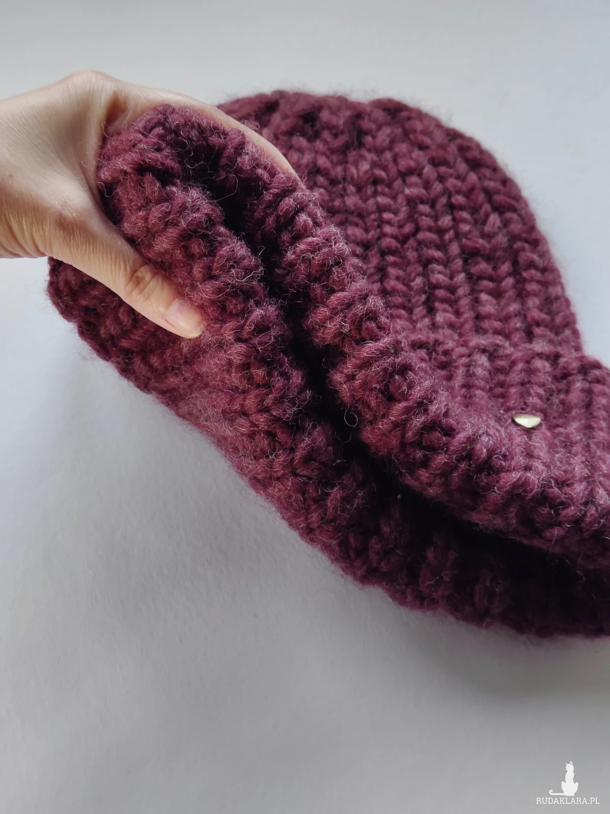 Czapka burgundowa, wykonana ze 100% wełny czesankowej.