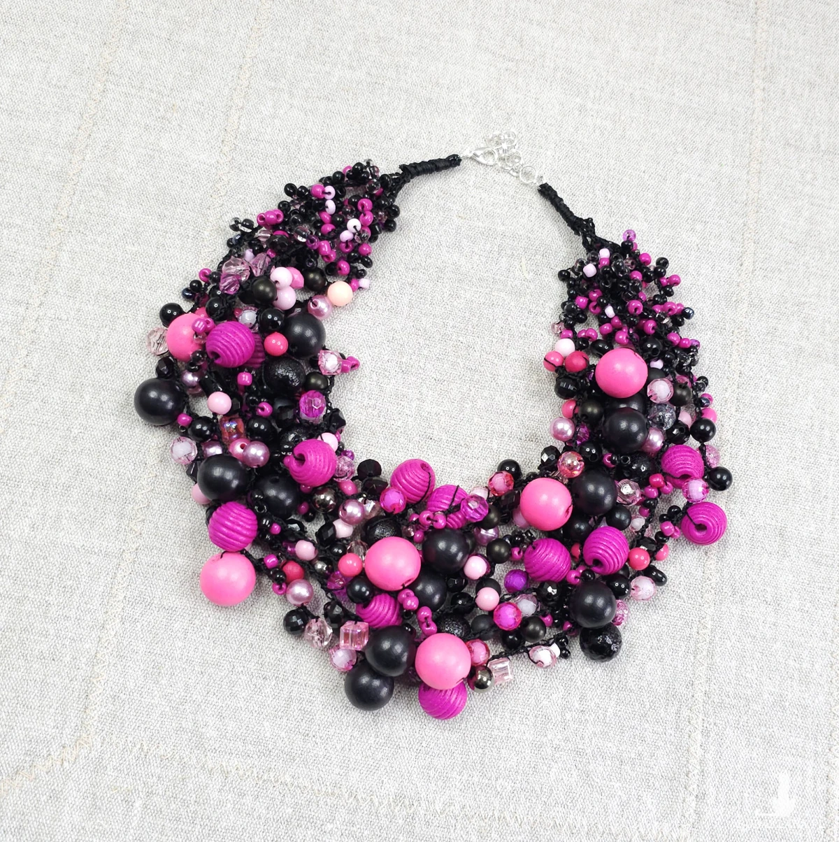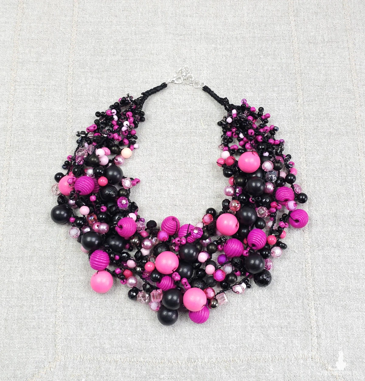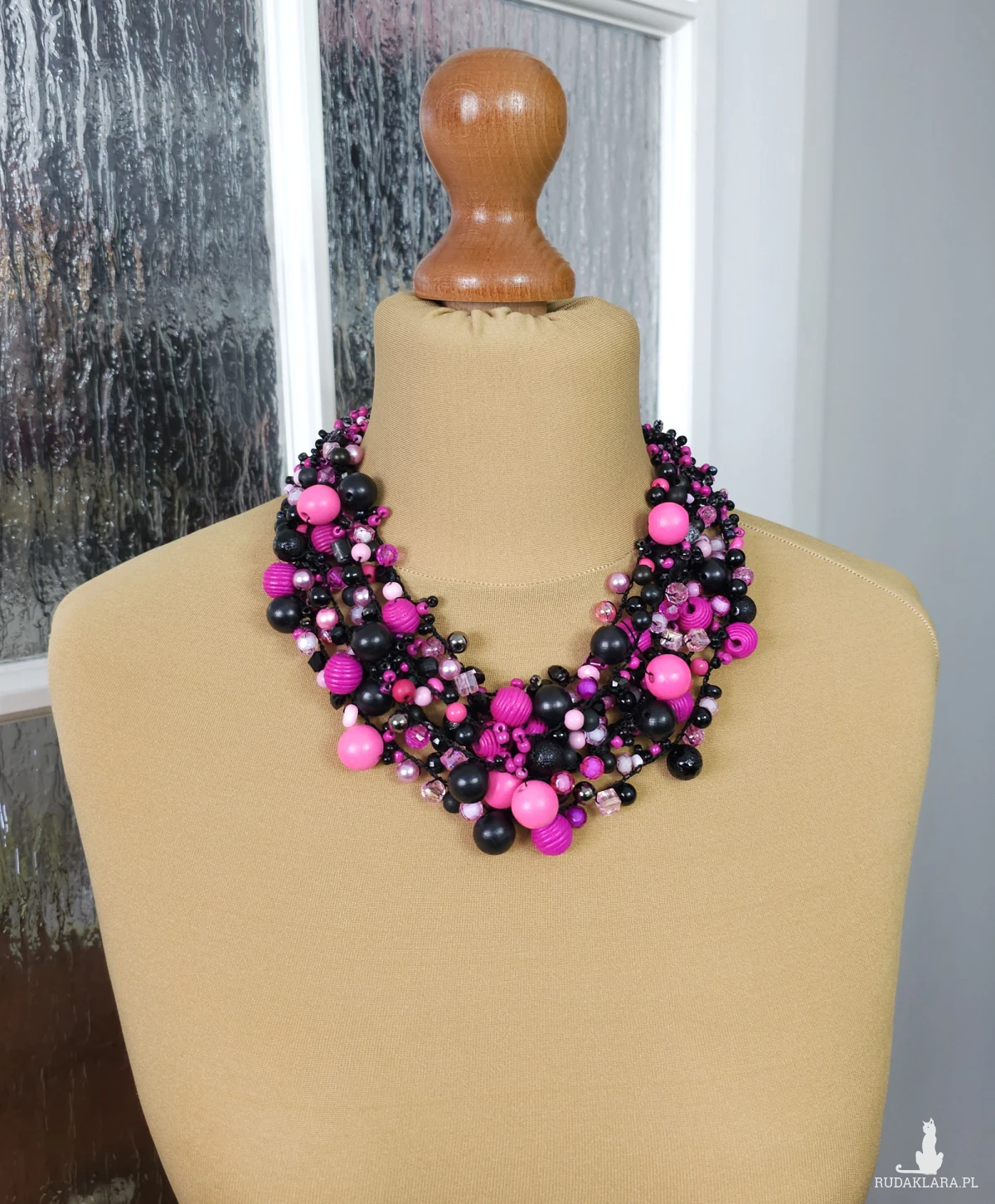 Prezentujemy unikatowy naszyjnik handmade, który łączy w sobie surowość czerni z radosną energią intensywnego różu.
