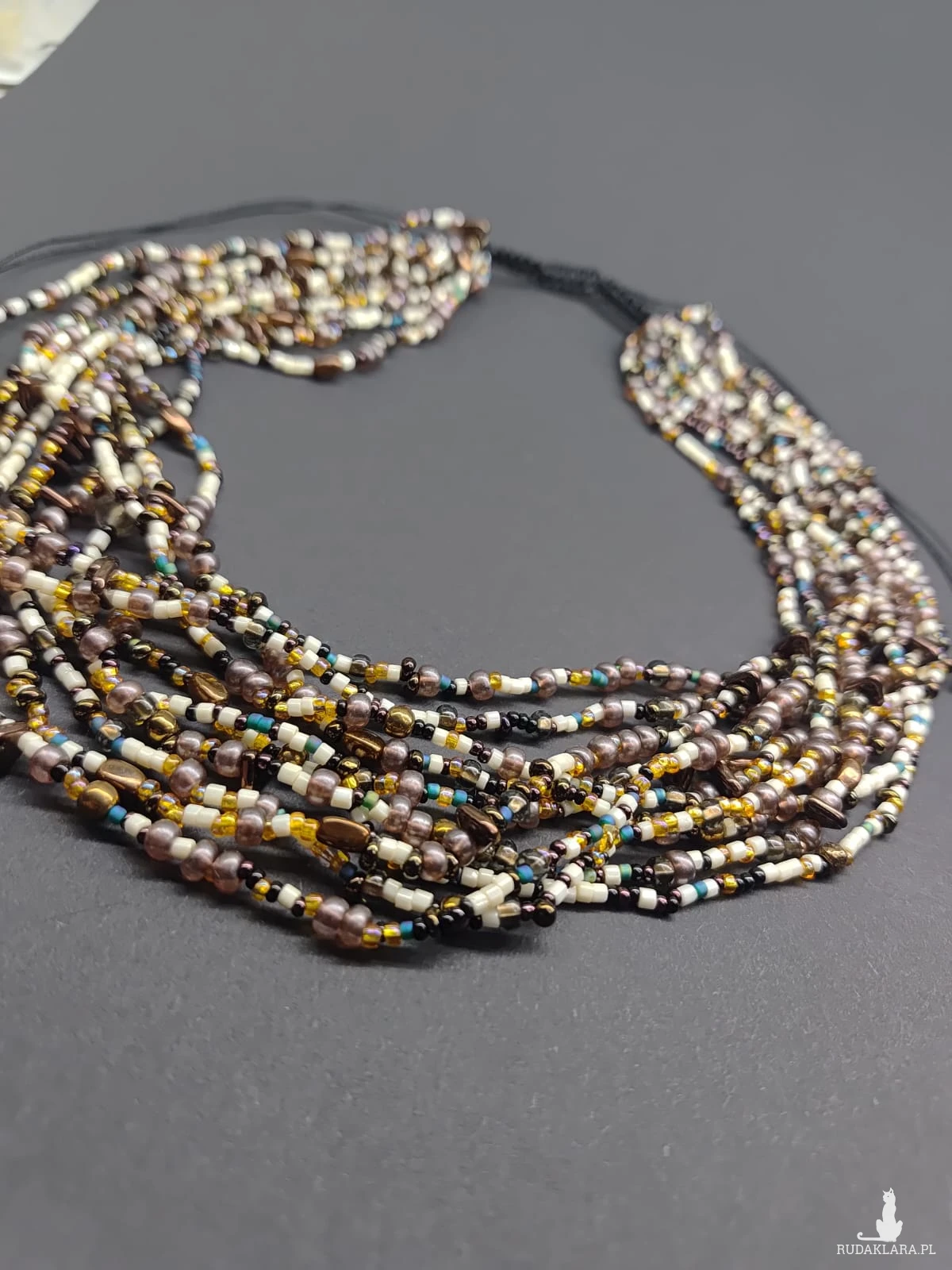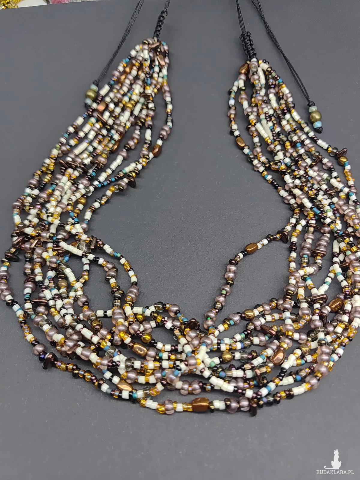 Naszyjnik Mix Korali Drobnych Brązowych Kremowych Z Drobinkami