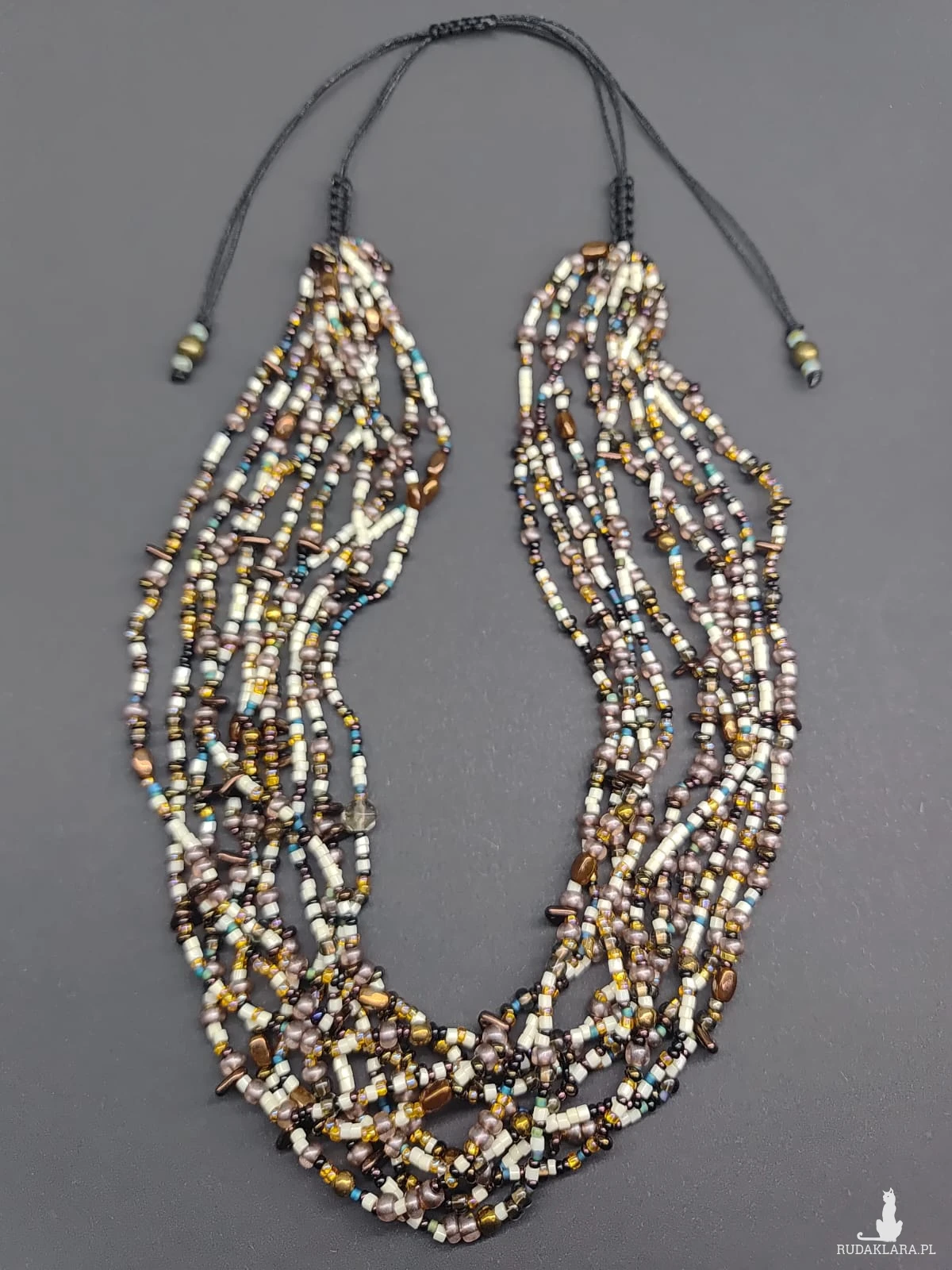 rónież pojedyncze koraliki zielone, złote, niebieskie. Naszyjnik na