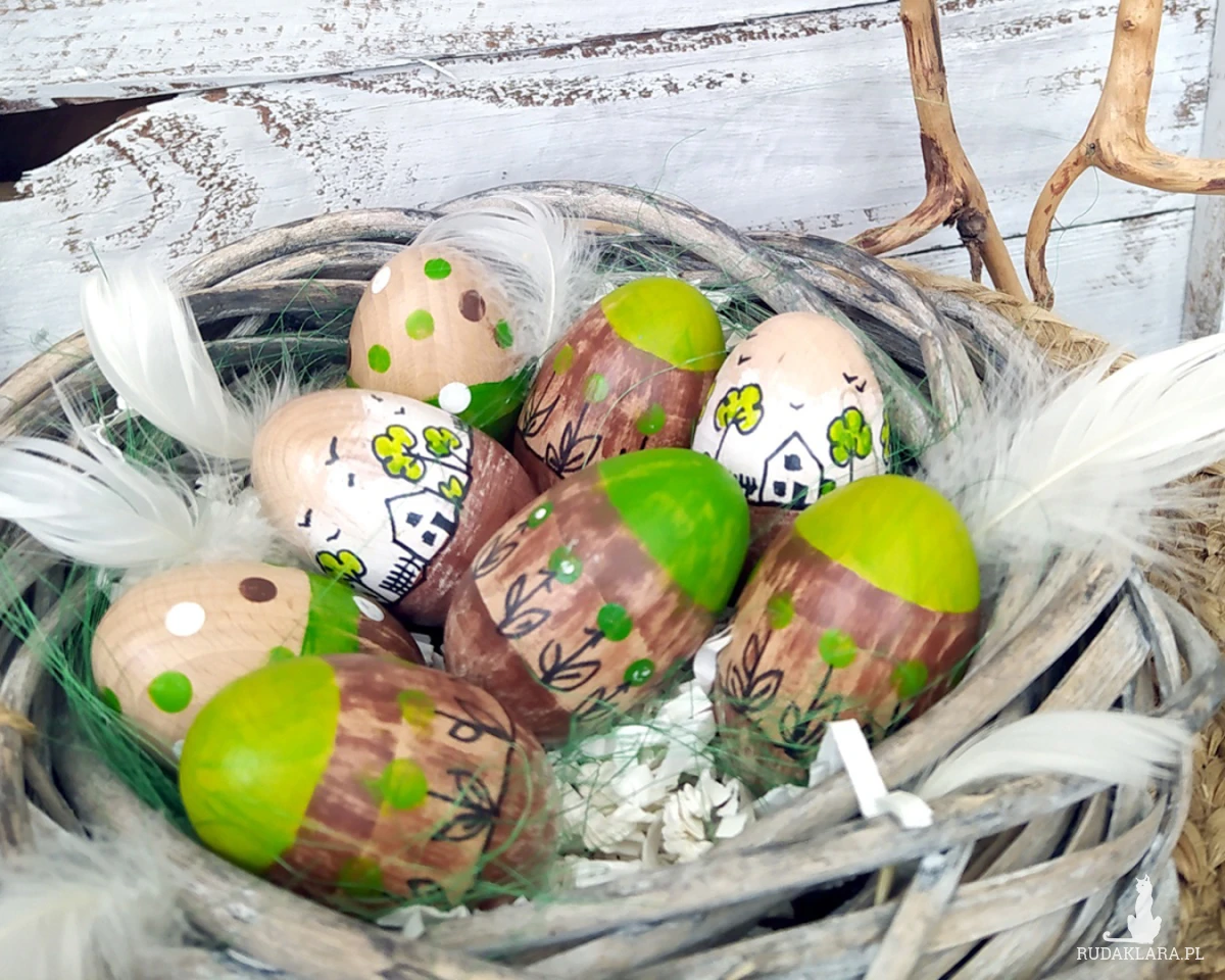 Pisanki są malowane farbami akrylowymi, kontury wykonane są pisakiem permamentnym. Całość zabezpieczona jest lakierem akrylowym - to jest nietoksyczny, bezzapachowy i matowy lakier. Jeśli pisanki się zabrudzą, wystarczy przetrzeć je wilgotną ściereczką - farba, którymi są pomalowane jest wodoodporna.
