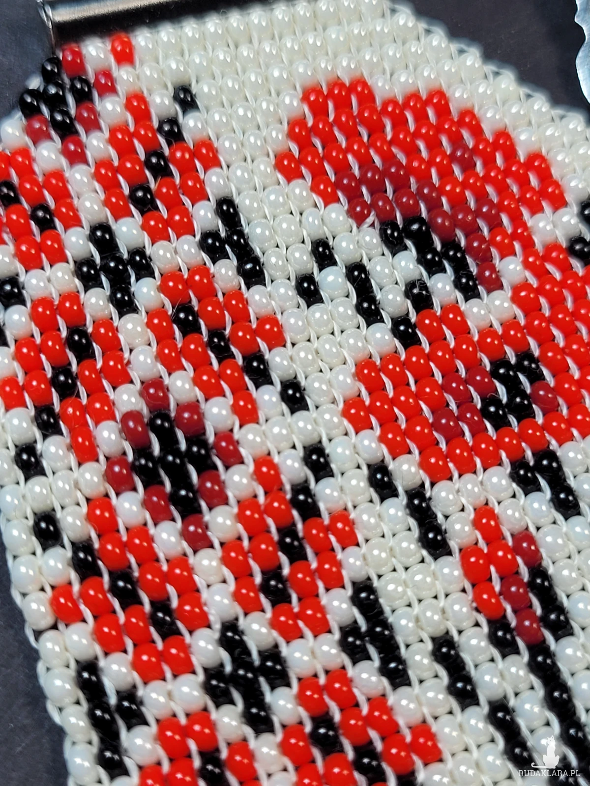 Mój produkt to ręczne tkactwo koralikowe (bead weaving) – niezwykle precyzyjna metoda, zapewniająca trwałość i gęsty, regularny splot. Autorski ornament roślinny z motywem maków idealnie komponuje się ze stylem folk i boho. Wykonałam go z wysokiej jakości szklanych koralików Preciosa o pięknym połysku, które zachowują swoje barwy przez lata.