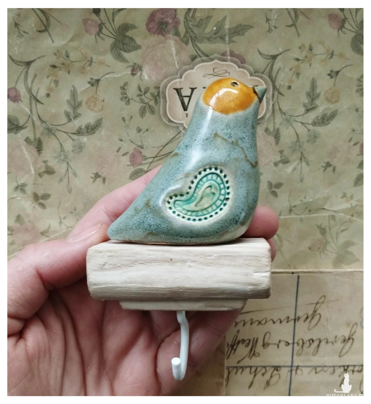 Wieszaczek z ceramicznym ptaszkiem w stylu vintage. Wymiary ok 6 x 8 cm. Serdecznie polecam jako miły upominek dla bliskiej sercu osoby.