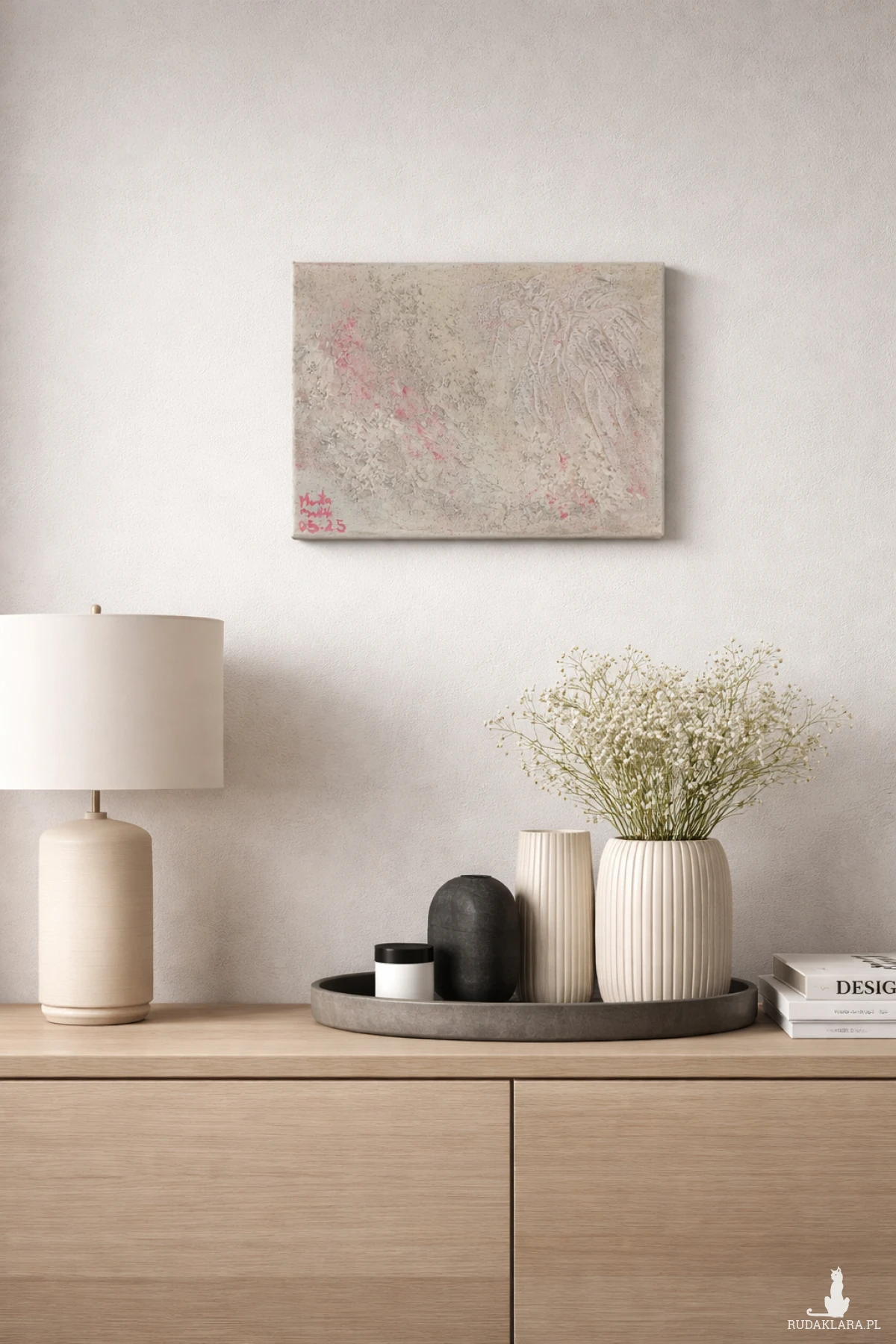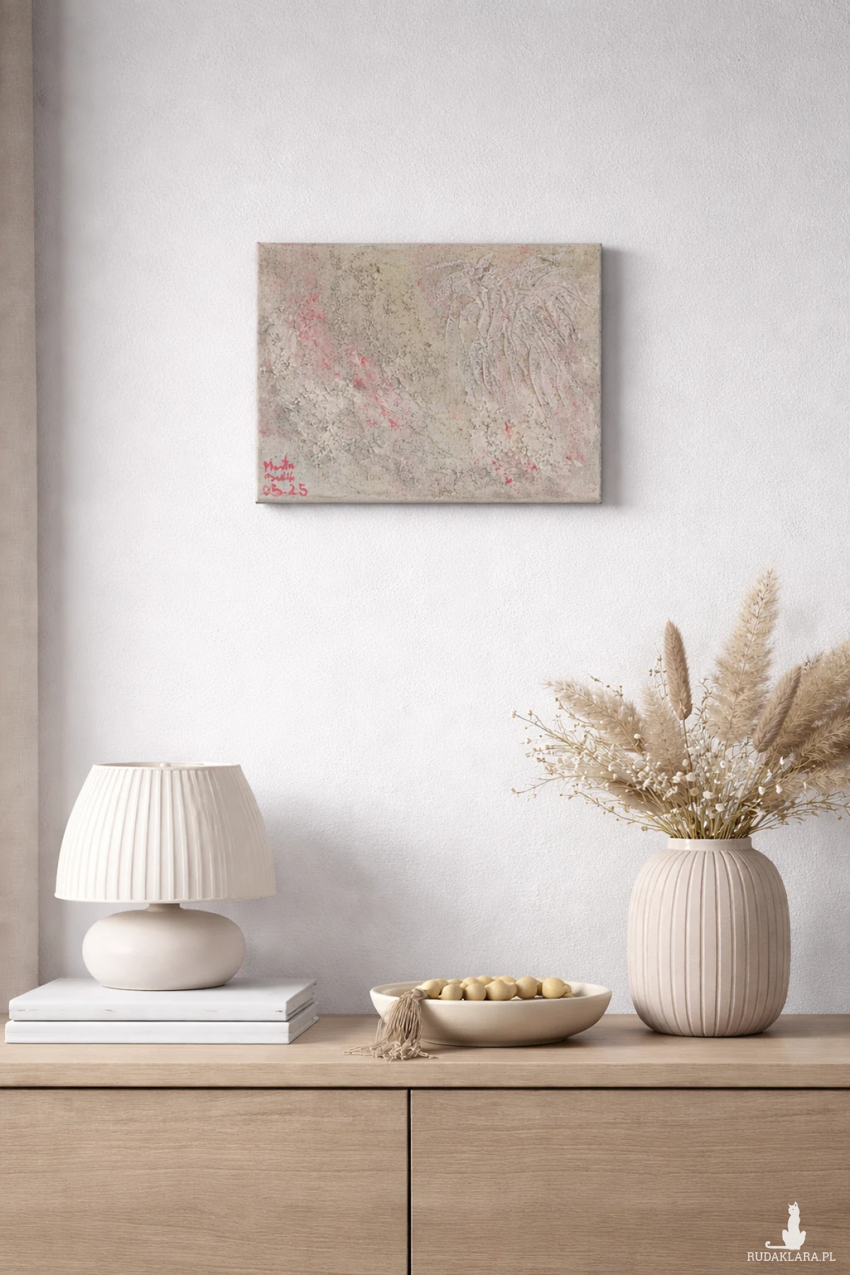 Nowoczesna, strukturalna abstrakcja, wykonana w autorskiej technice