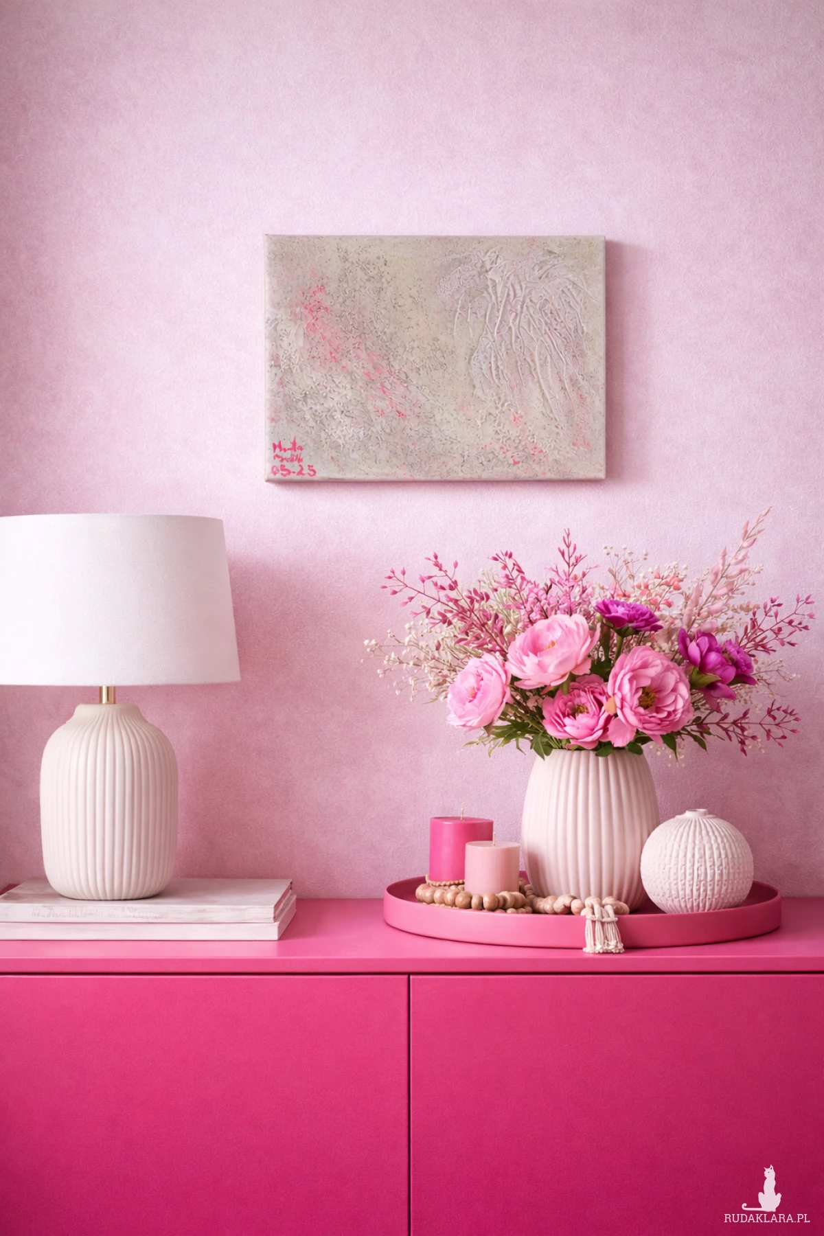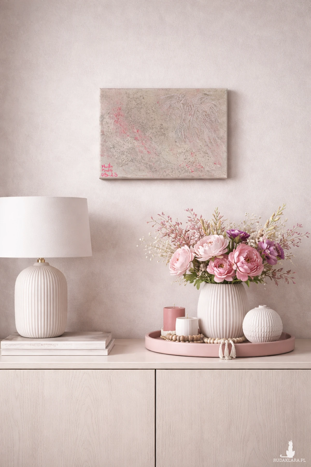 bladej, głębinowej kolorystyce z kontrastowy akcentem. Delikatna kolorystyka