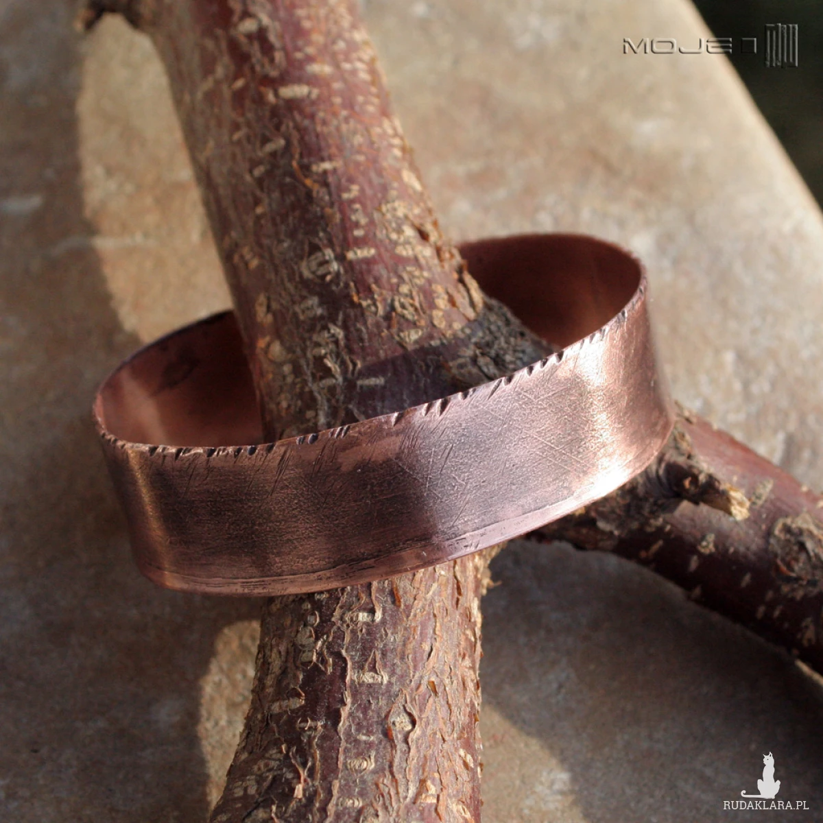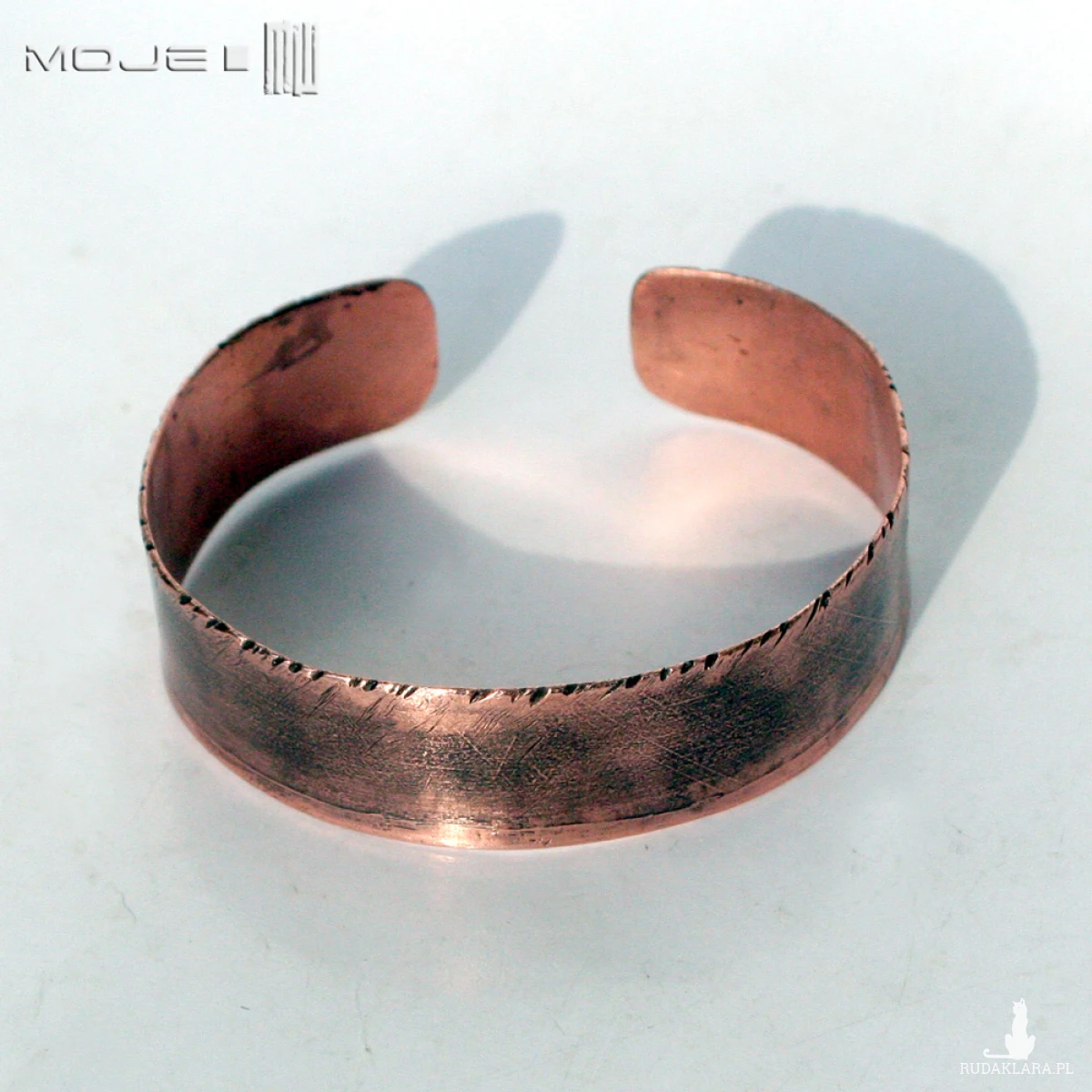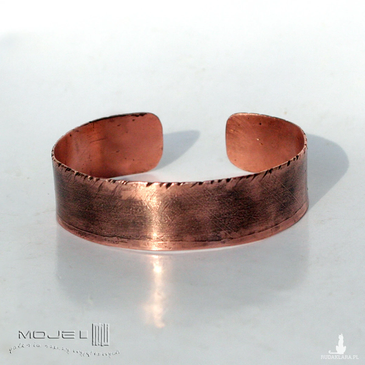 Prosta miedziana bransoleta unisex - pasuje zarówno na męską, jak i damską rękę.