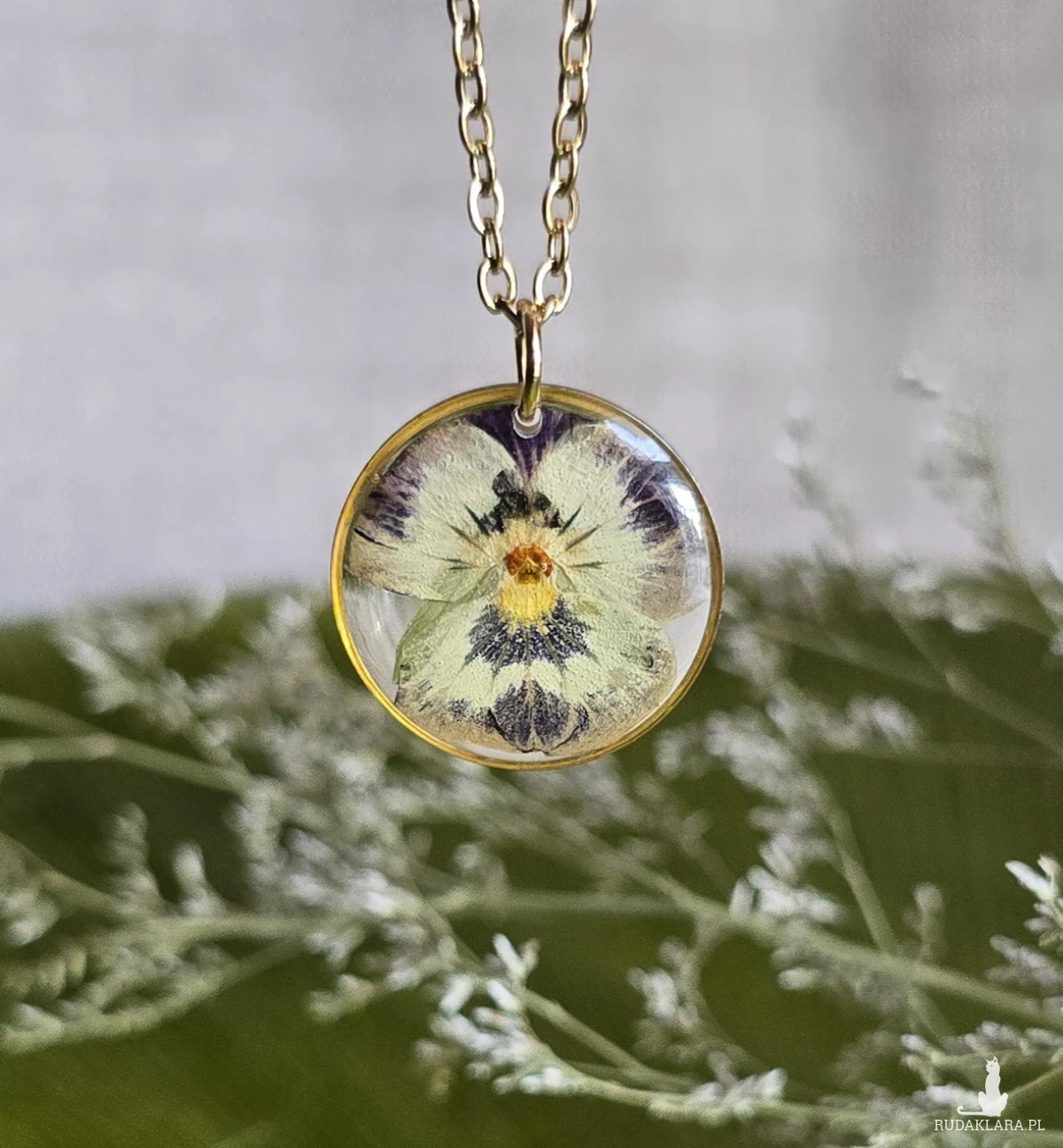 .Oferuję Państwu unikalną biżuterię. Zawieszka jest wykonana z suszonych kwiatów i żywicy epoksydowej. Biżuteria jest wspaniałym i oryginalnym prezentem na lata.