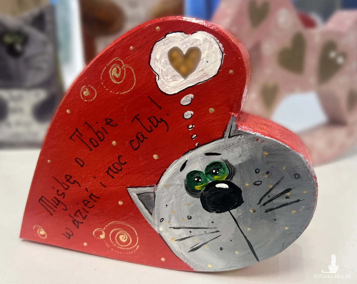 Serduszko miłości "Myślę o Tobie w dzień i noc całą!" -malowane ręcznie, materiał dąb, wymiary 14 x 10 x 2,5 cm