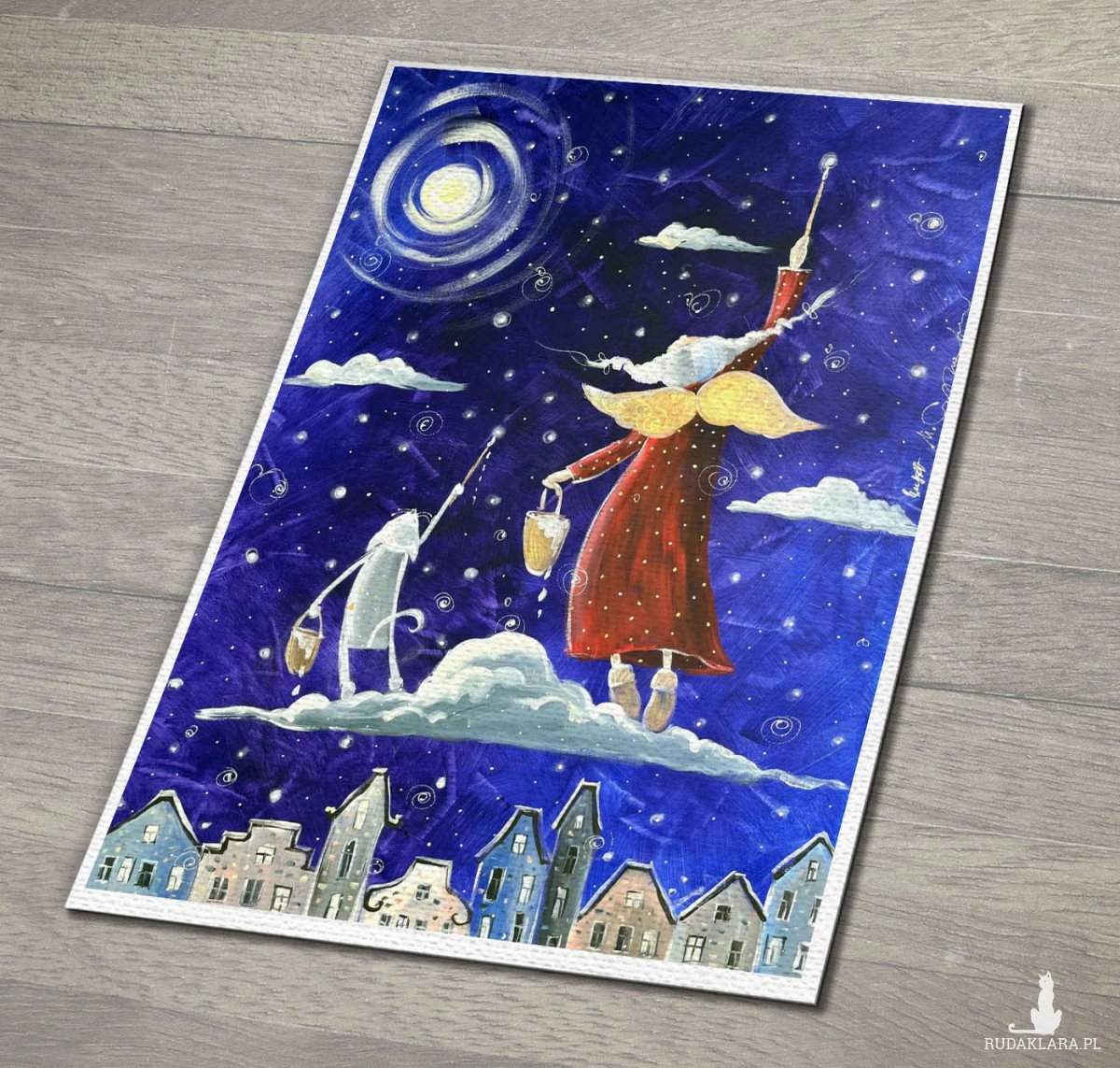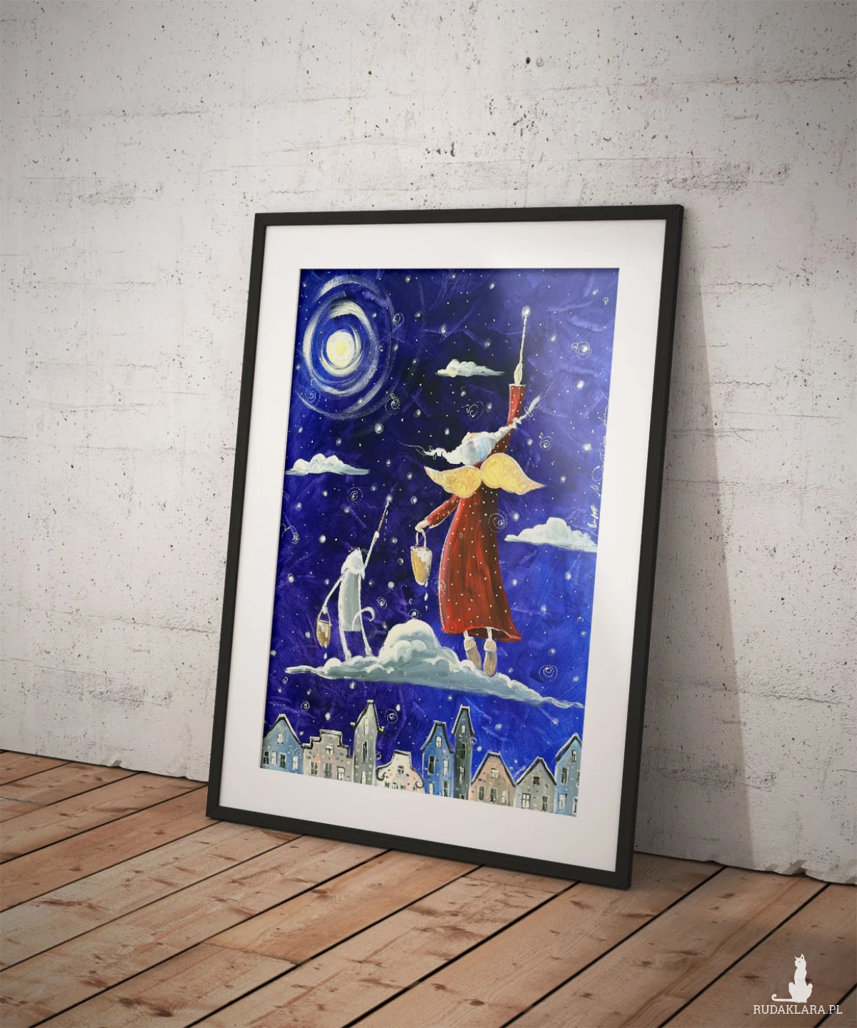 Reprodukcja własnej pracy o tytule "Magiczne gwiazdki marzeń", malowanej oryginalnie farbami akrylowymi na płótnie. Drukowana za pomocą ekologicznych, bezwonnych tuszy pigmentowych EPSON UltraChrome HD Ink, na białym papierze o gramaturze 200-220 g/m². Plakat sprzedawany jest bez ramy.