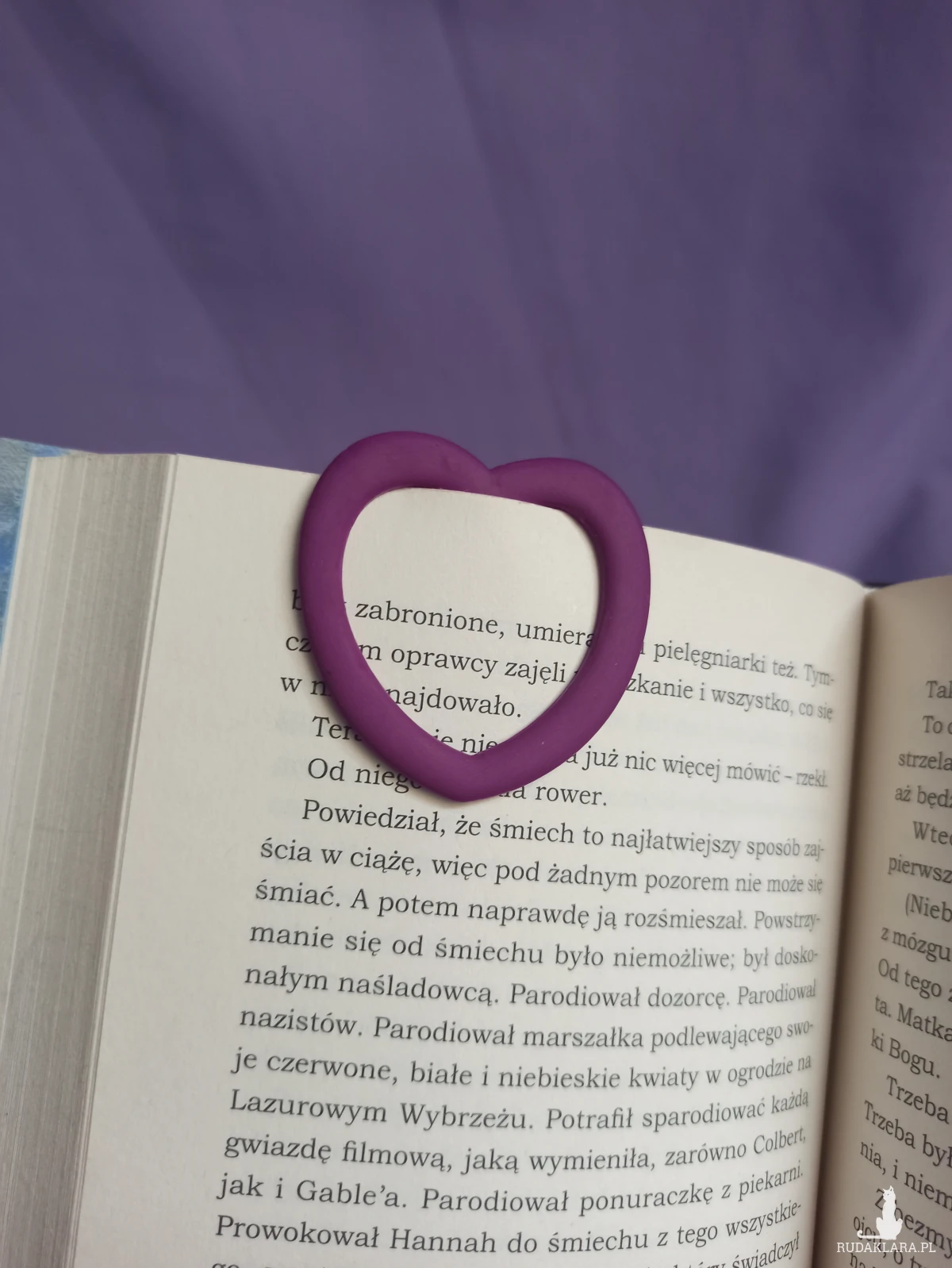 Zakładka do książki w kształcie serduszka wykonana z wysokiej jakości gliny polimerowej w kolorze ciemnego fioletu