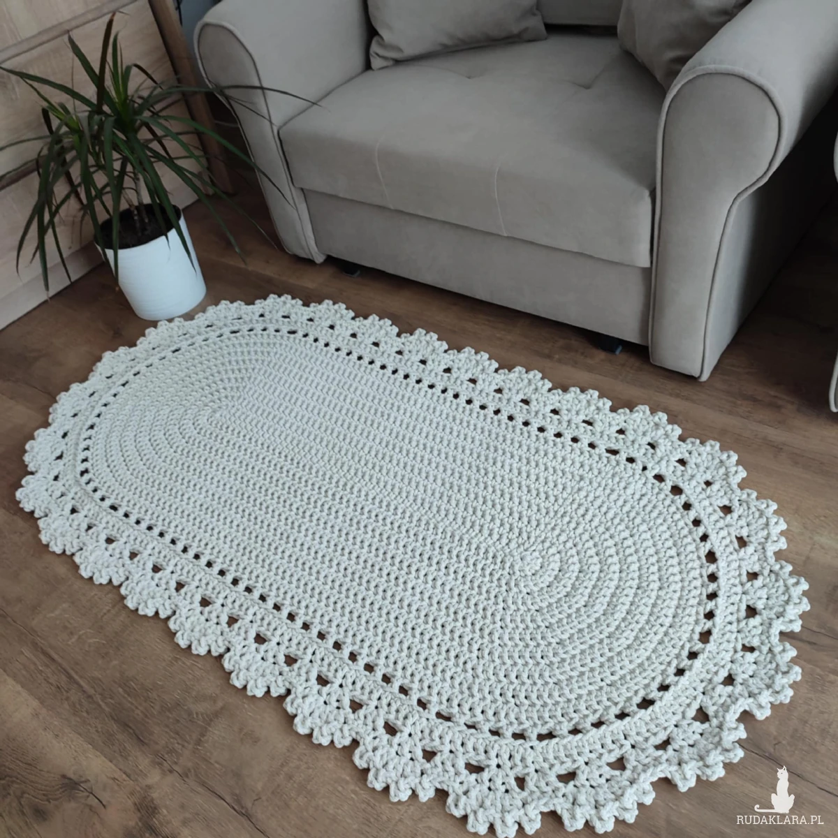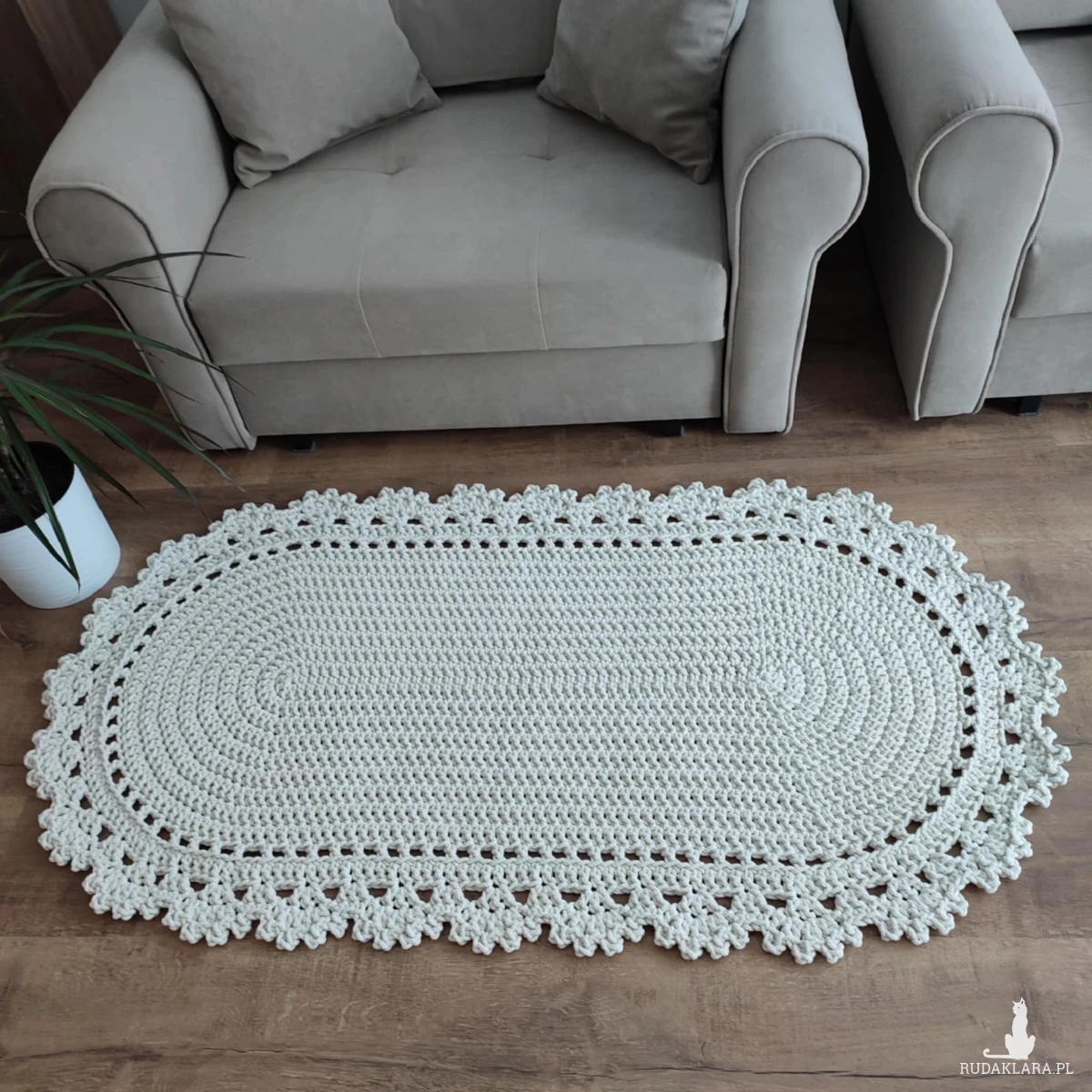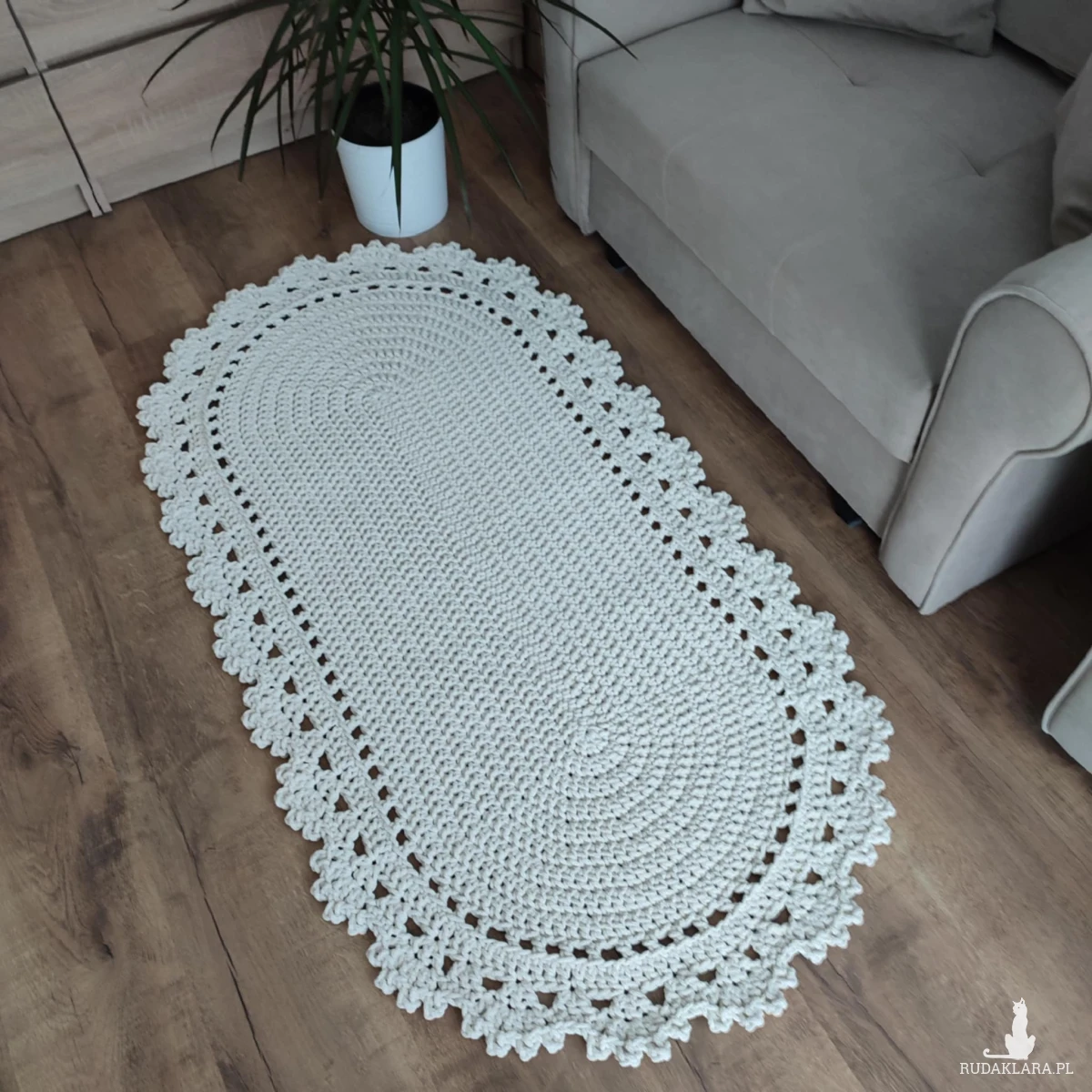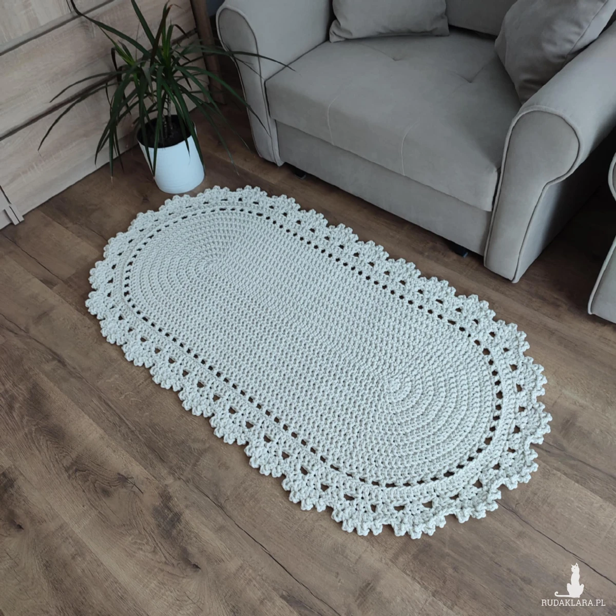 Dywan o wymiarach 75cmx140cm, wykonany metodą szydełkowania z polskiego sznurka bawełnianego 5mm.