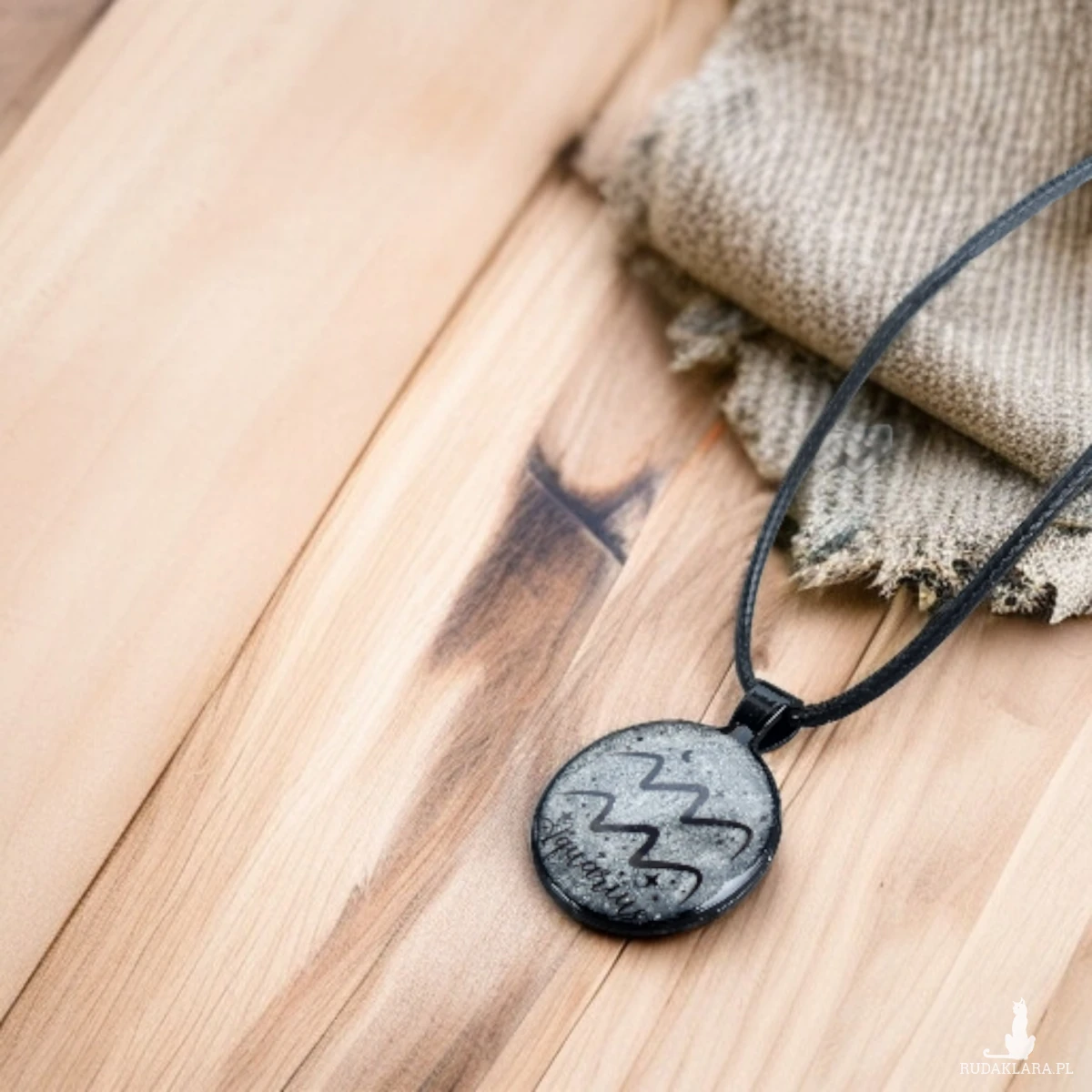 Odkryj wyjątkowy naszyjnik z żywicy inspirowany znakiem zodiaku Wodnik. Wisiorek został wykonany ręcznie z dbałością o każdy detal – w jego środku znajduje się srebrzyste, delikatnie połyskujące tło przypominające kosmiczny pył, na którym widnieje minimalistyczny symbol Wodnika oraz drobne akcenty gwiazd. Całość zamknięta jest w eleganckiej czarnej oprawie, nadającej mu nowoczesny i lekko mistyczny charakter.