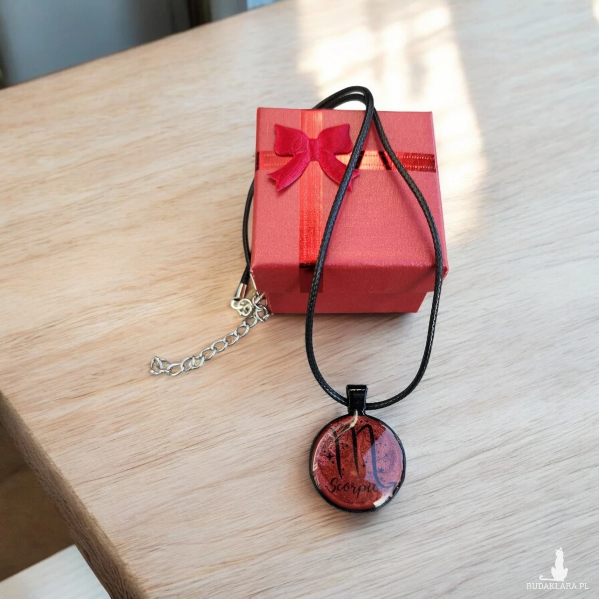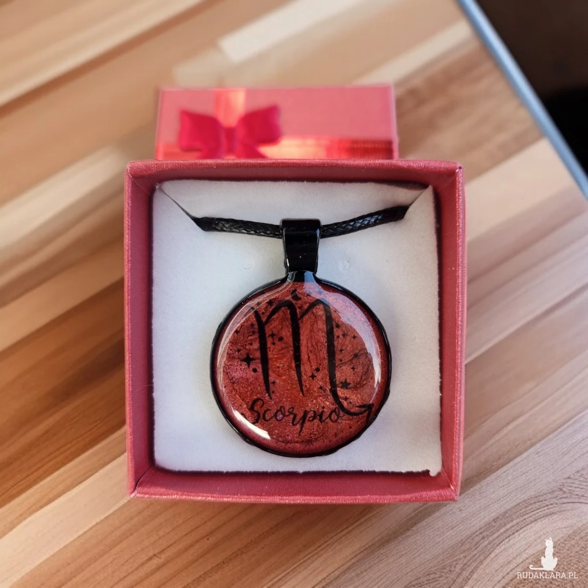 Poznaj wyjątkowy, ręcznie wykonany naszyjnik z żywicy inspirowany znakiem zodiaku Skorpion. To niepowtarzalny talizman, który łączy elegancję, symbolikę astrologiczną i nowoczesny styl. Idealny jako prezent urodzinowy, upominek z okazji świąt lub wyjątkowy dodatek dla osób kochających astrologię oraz unikalną biżuterię.
