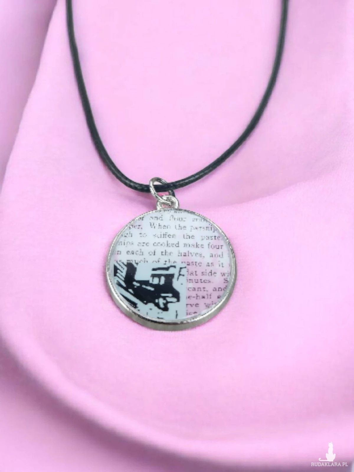 Oryginalny, ręcznie robiony wisiorek wykonany z przejrzystej żywicy epoksydowej oraz dekoracyjnej taśmy washi. Delikatny motyw graficzny umieszczony na tle fragmentu tekstu tworzy niepowtarzalny, artystyczny efekt – każdy egzemplarz jest unikatowy.