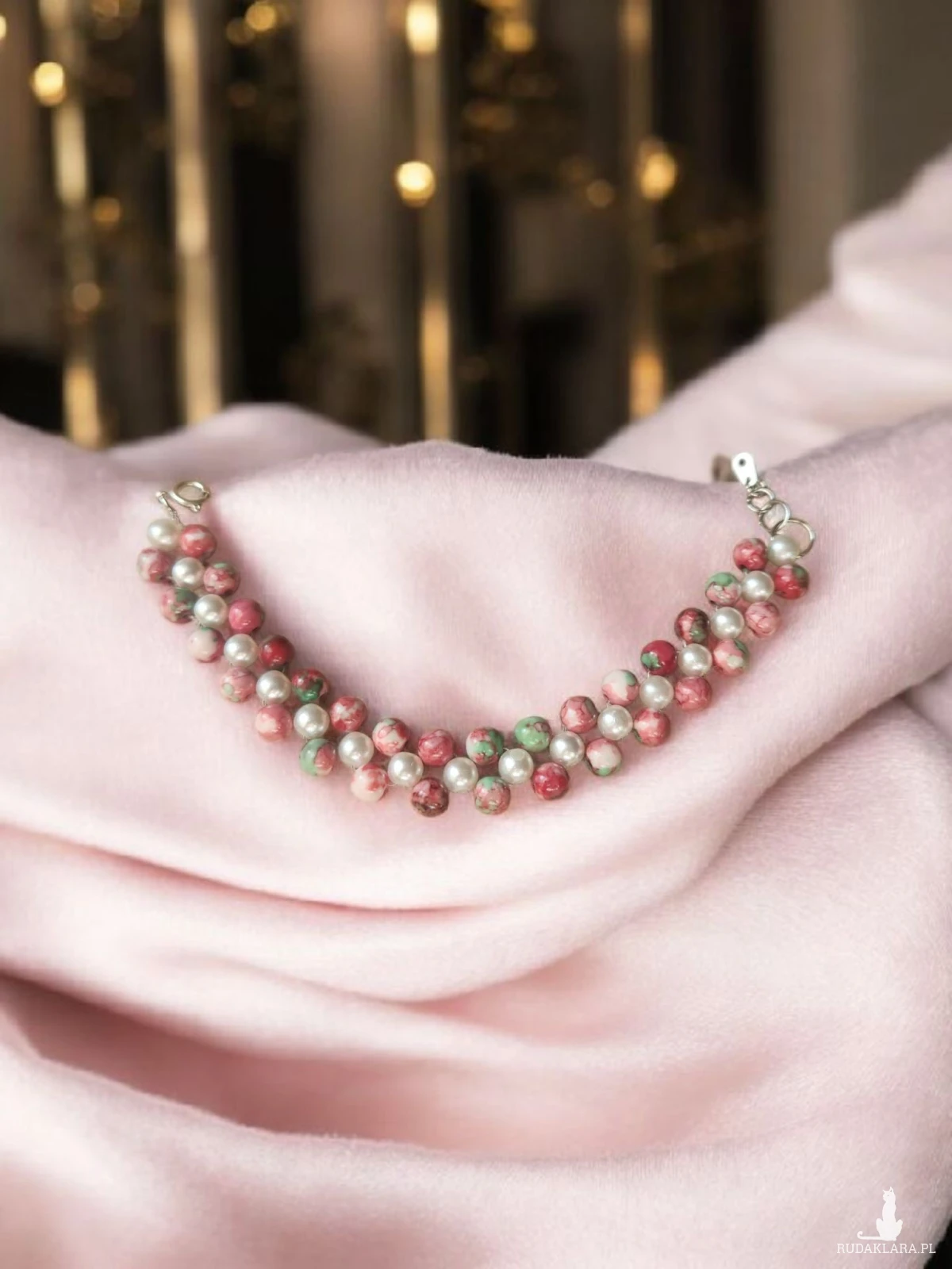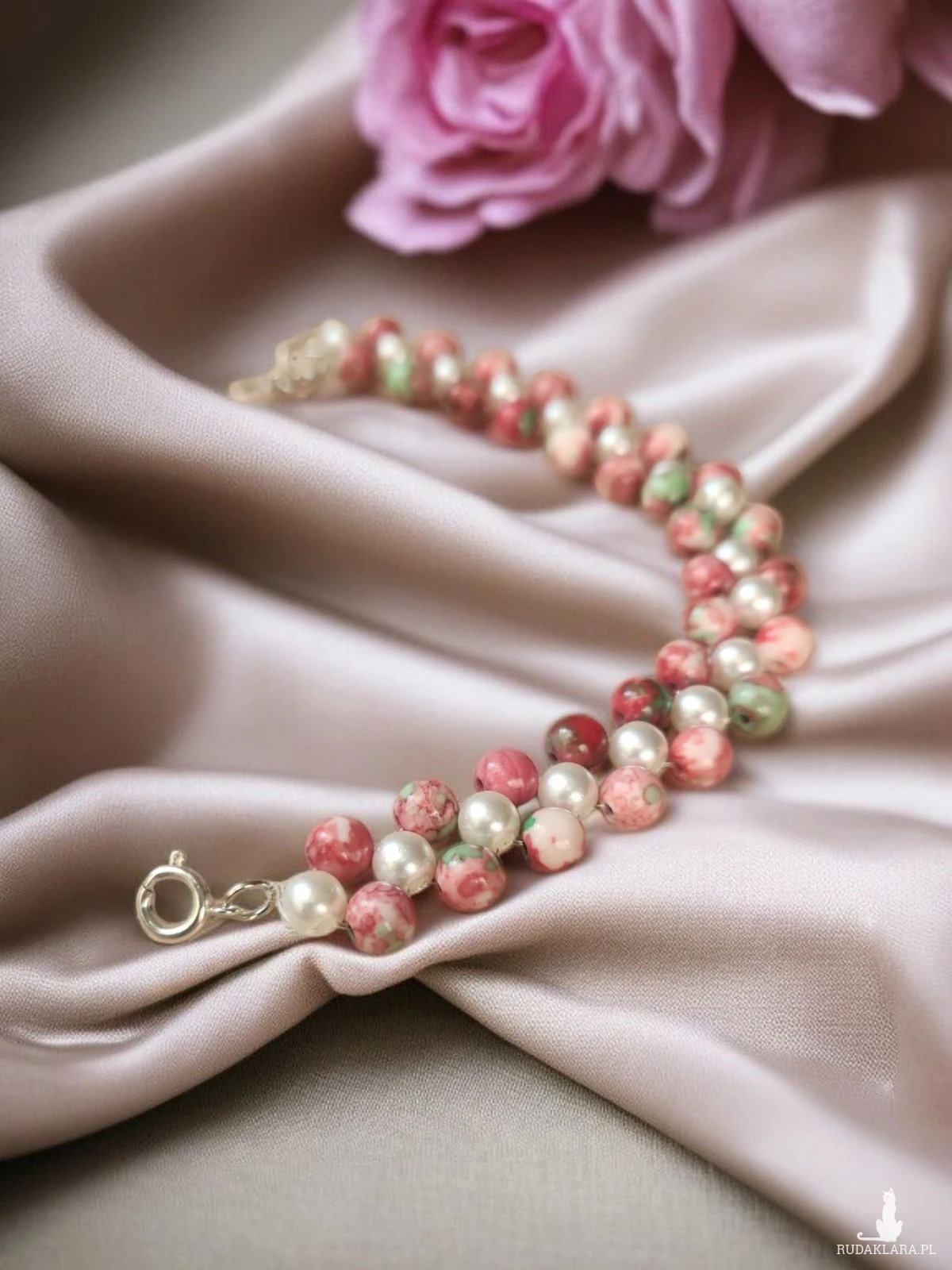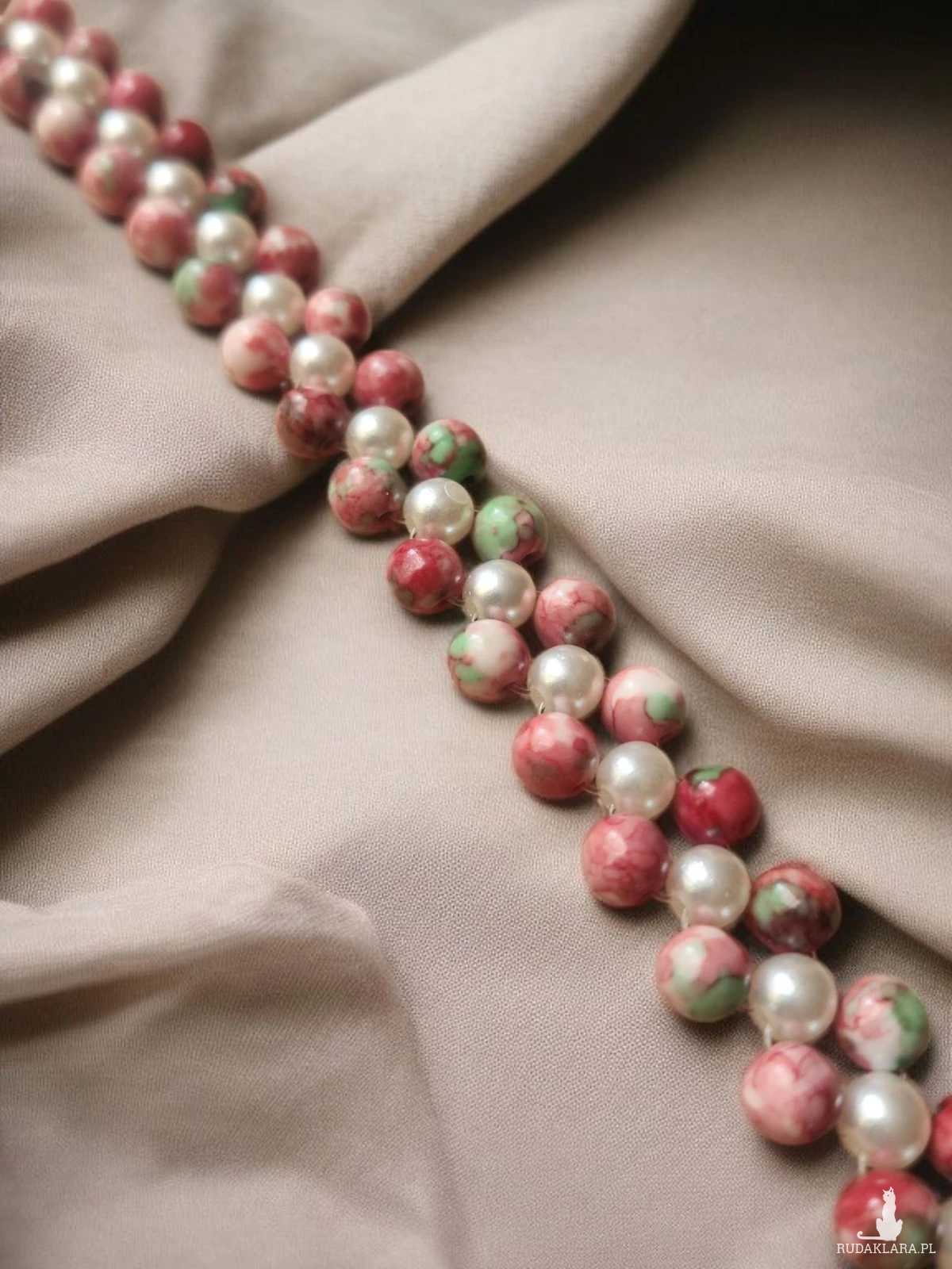 koraliki perłowe oraz marmurkowe w odcieniach różu i zieleni