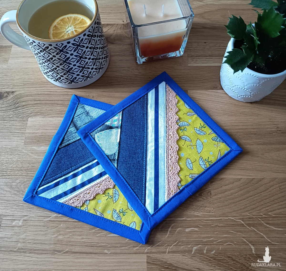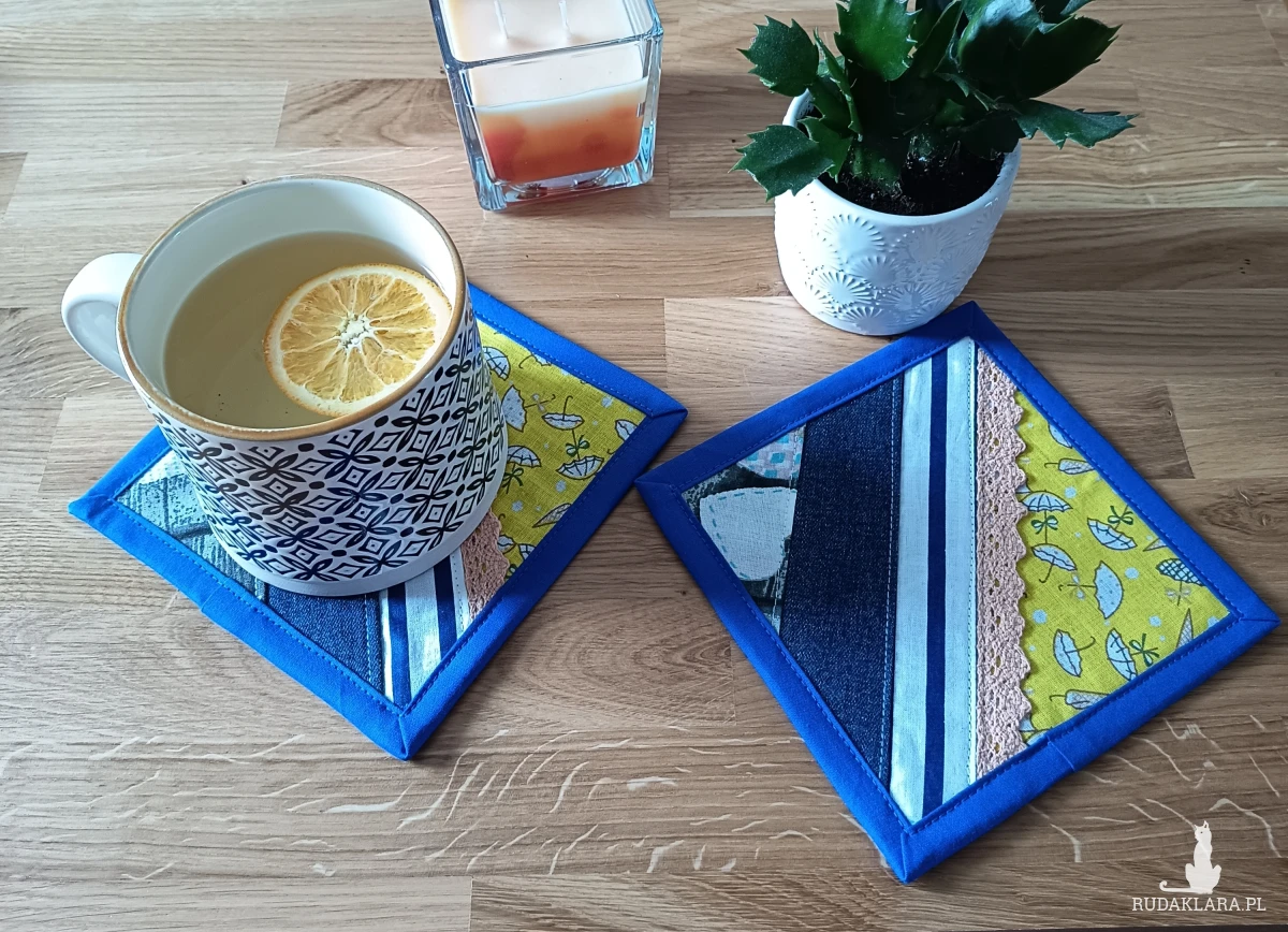 Ręcznie robione podkładki pod kubek – paczworkowe.
