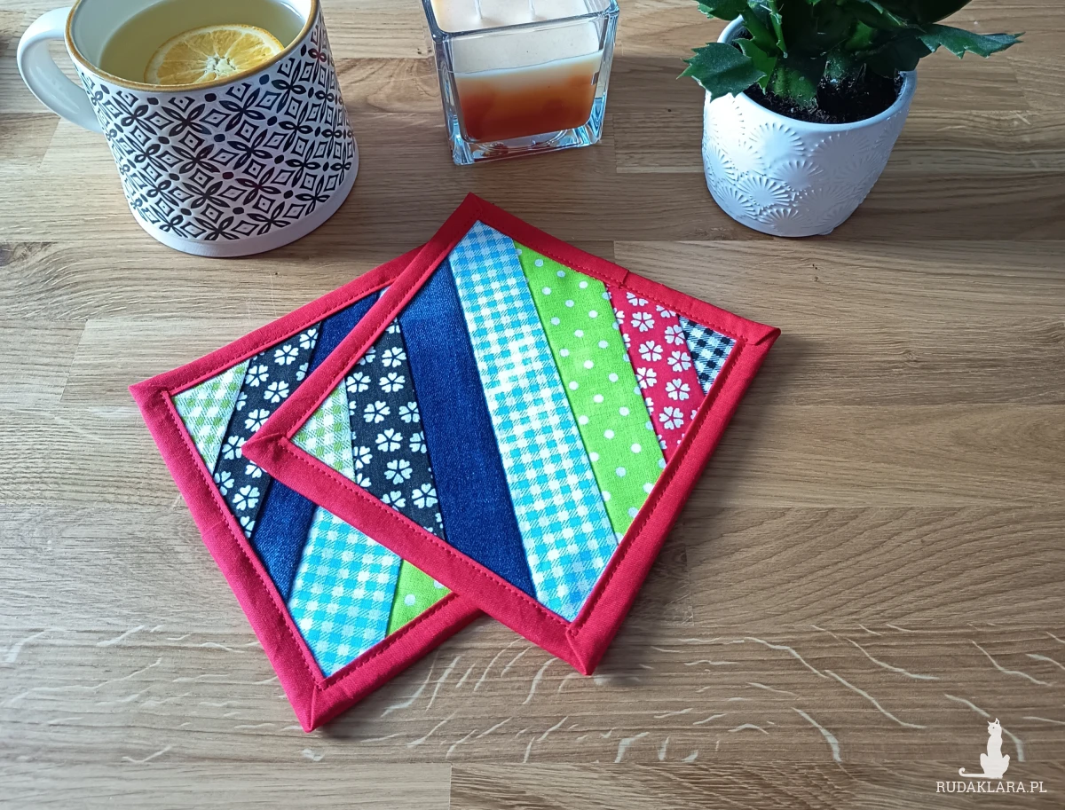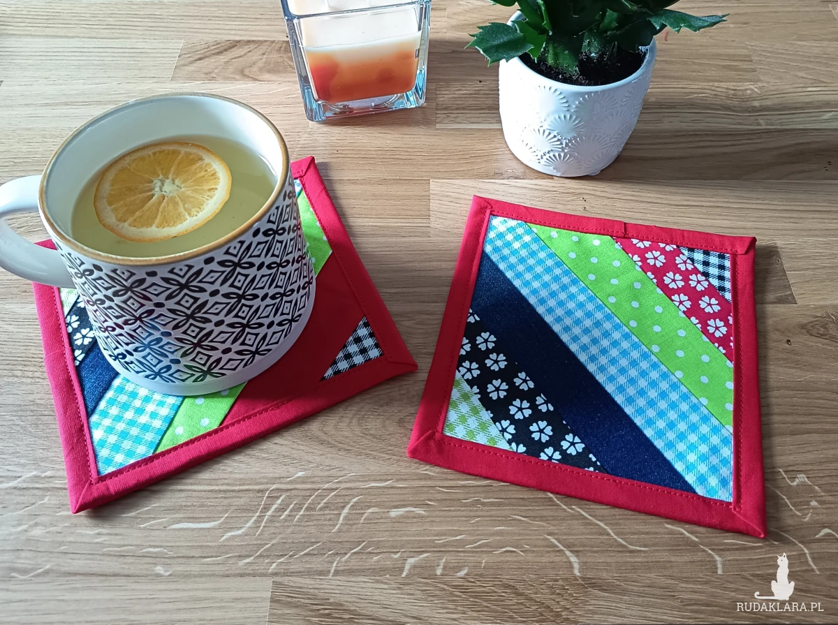 Ręcznie robione podkładki pod kubek – paczworkowe.
