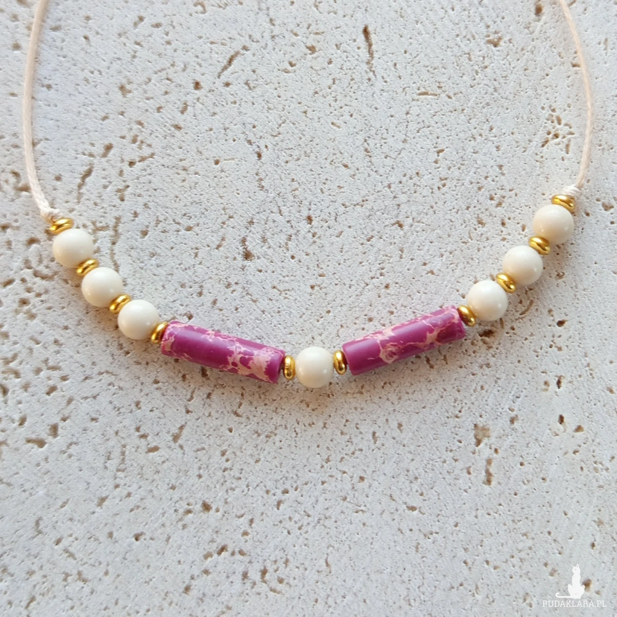 "Rosa" - bransoletka z kamieni naturalnych i mocnego sznurka jubilerskiego. Regulacja za pomocą plecionki makramowej. Wiosenne pastelowe kolory.