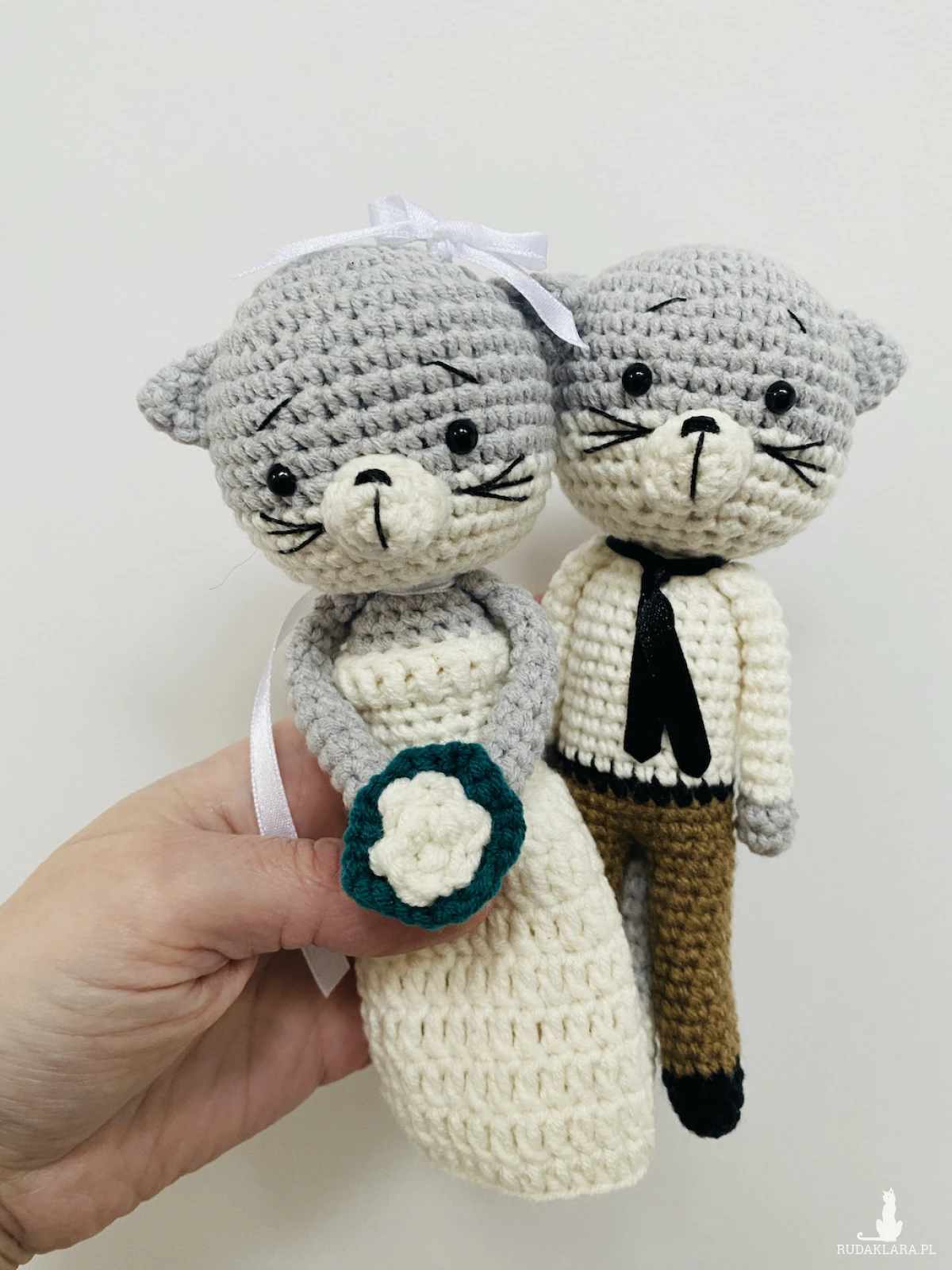 Szukasz unikalnego, pełnego uroku prezentu ślubnego? Te ręcznie wykonane, szydełkowe kotki stanowią oryginalną pamiątkę ślubu, podziękowanie dla gości lub subtelną dekorację weselną.