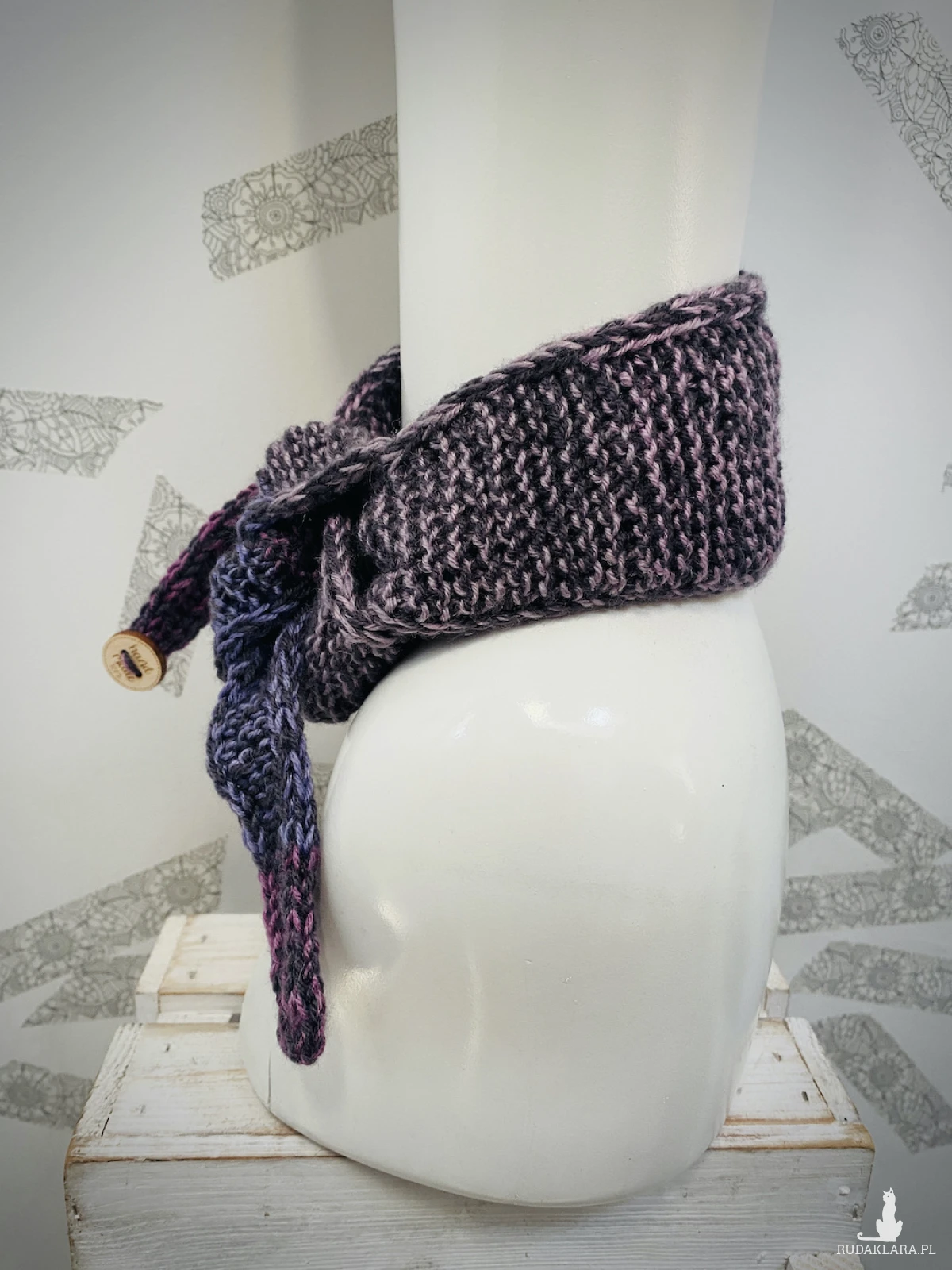 Co ważne – ten model jest wyjątkowo wszechstronny. Można zawiązać go również na głowie jak szeroką opaskę zamiast czapki, tworząc stylowy i modny akcent, idealny na chłodniejsze dni.