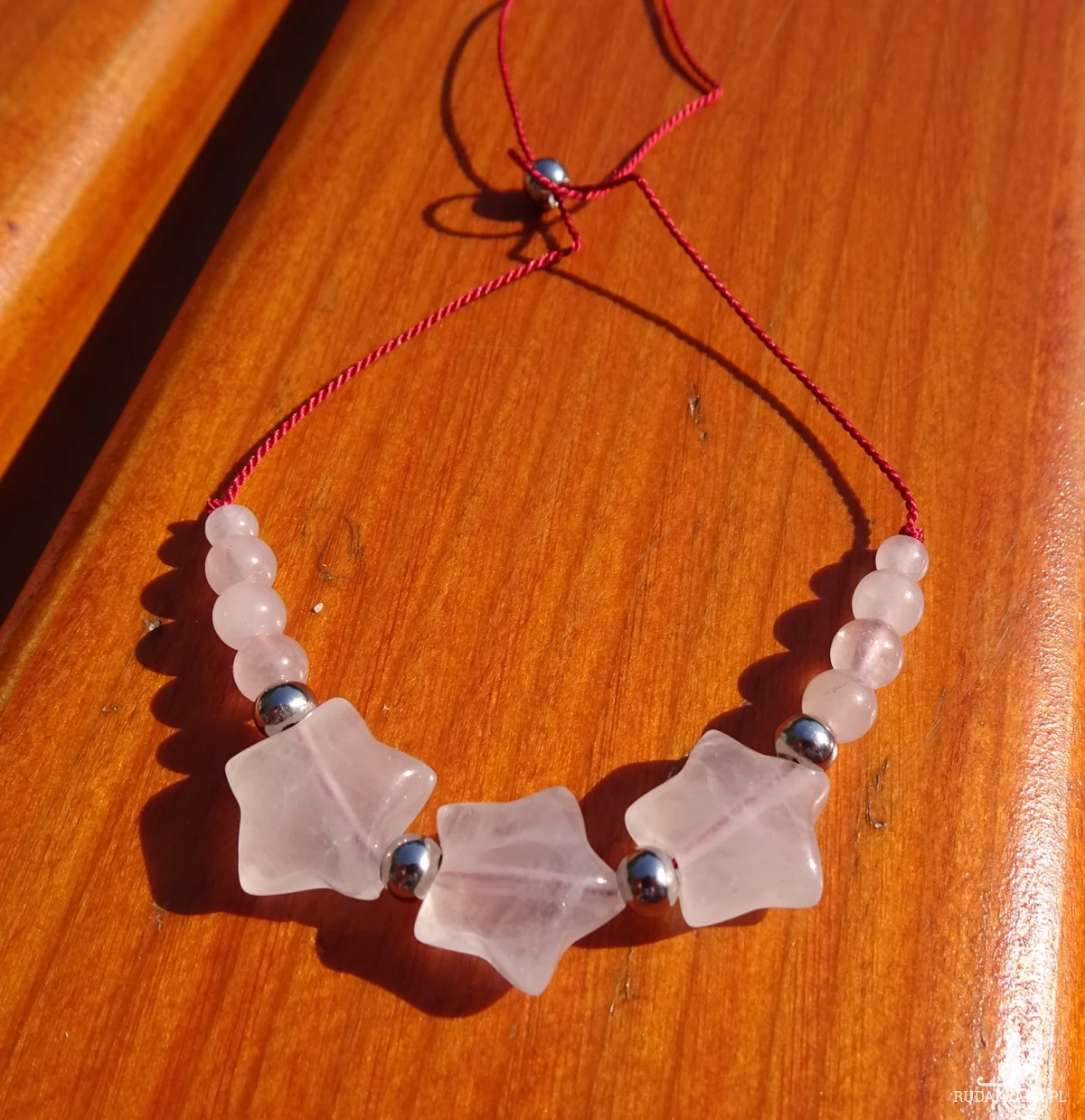 Bransoletka na nici jedwabnej z naturalnych kamieni kwarcu różowego