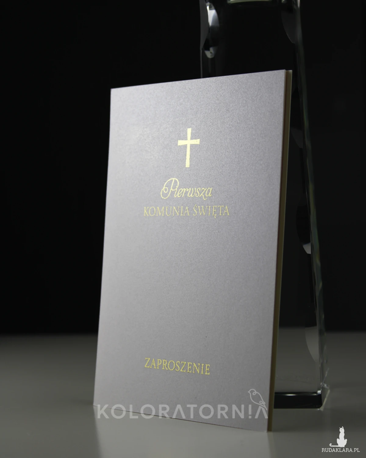 Zaproszenie na imprezę z okazji Pierwszej Komunii Świętej ze złoceniem.