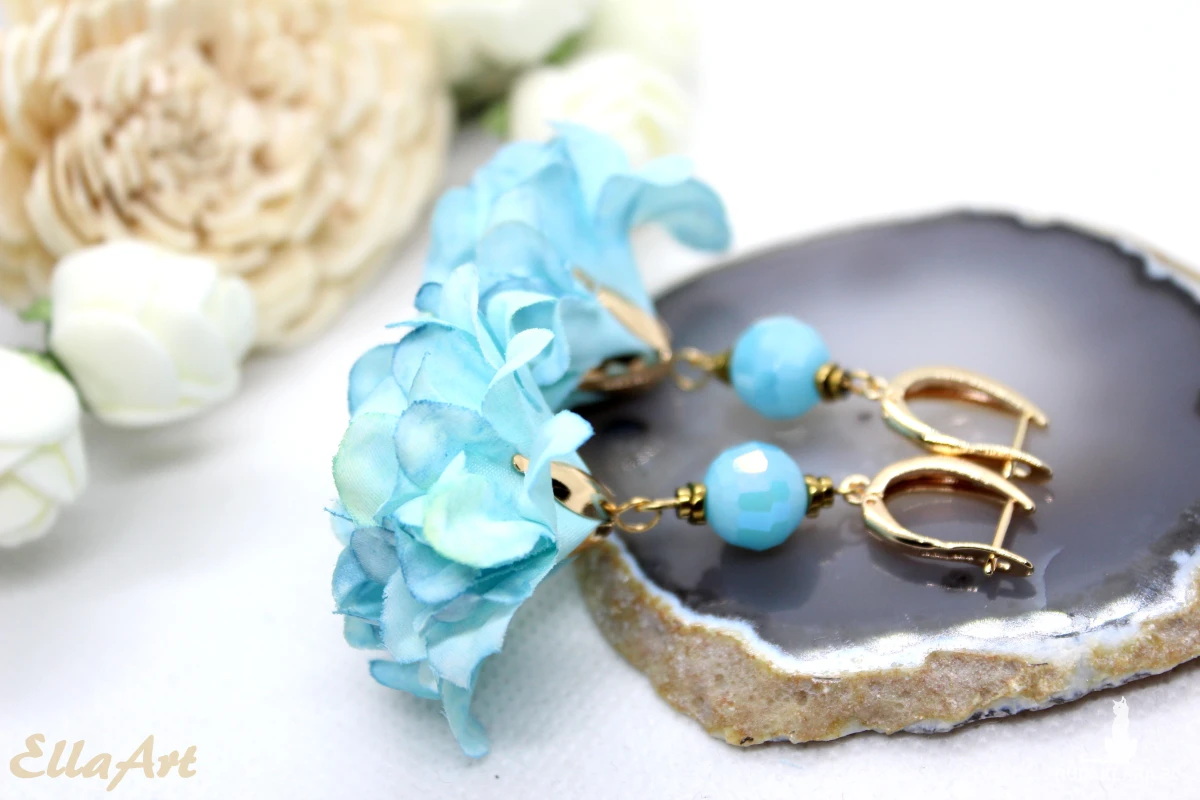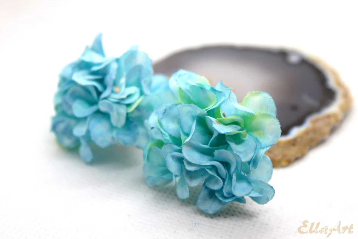 eleganckie kolczyki - błękitny kwiat hortensji