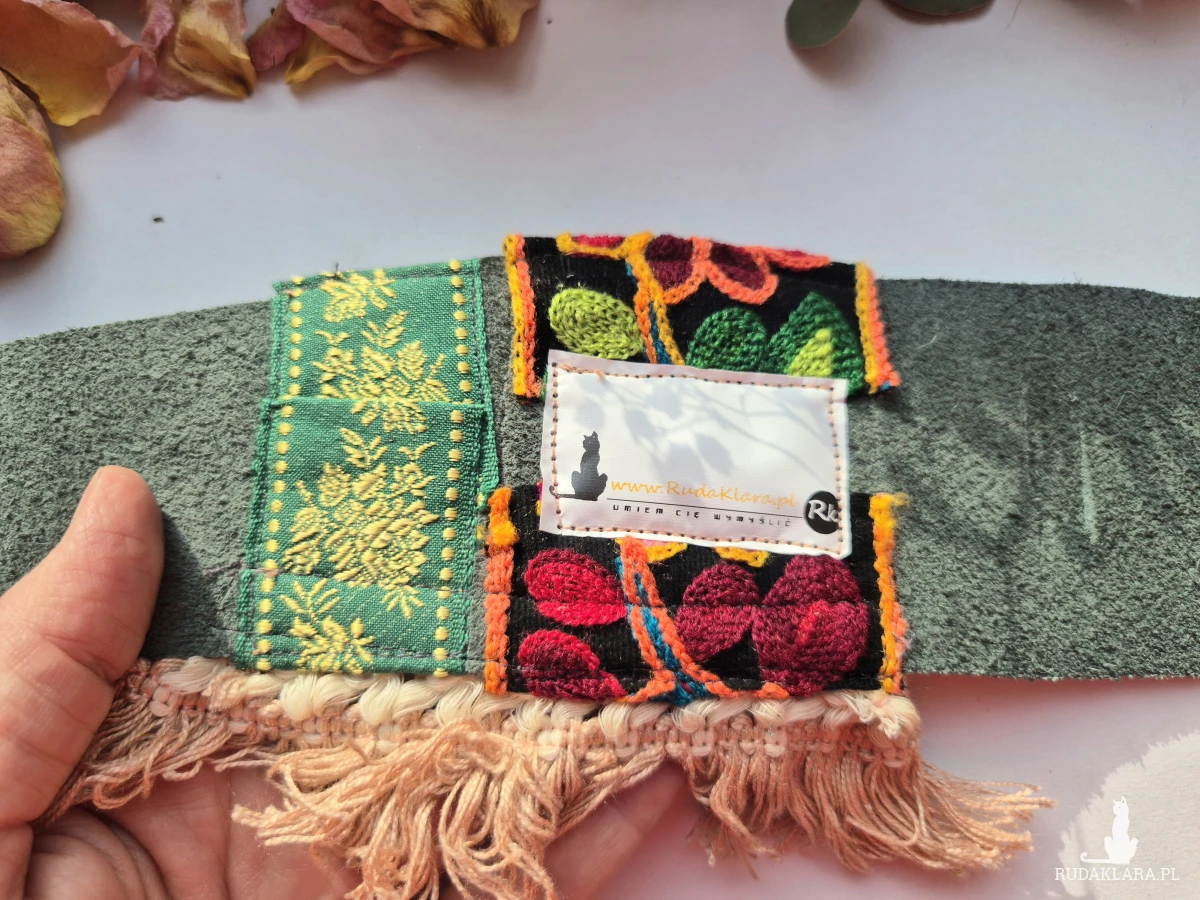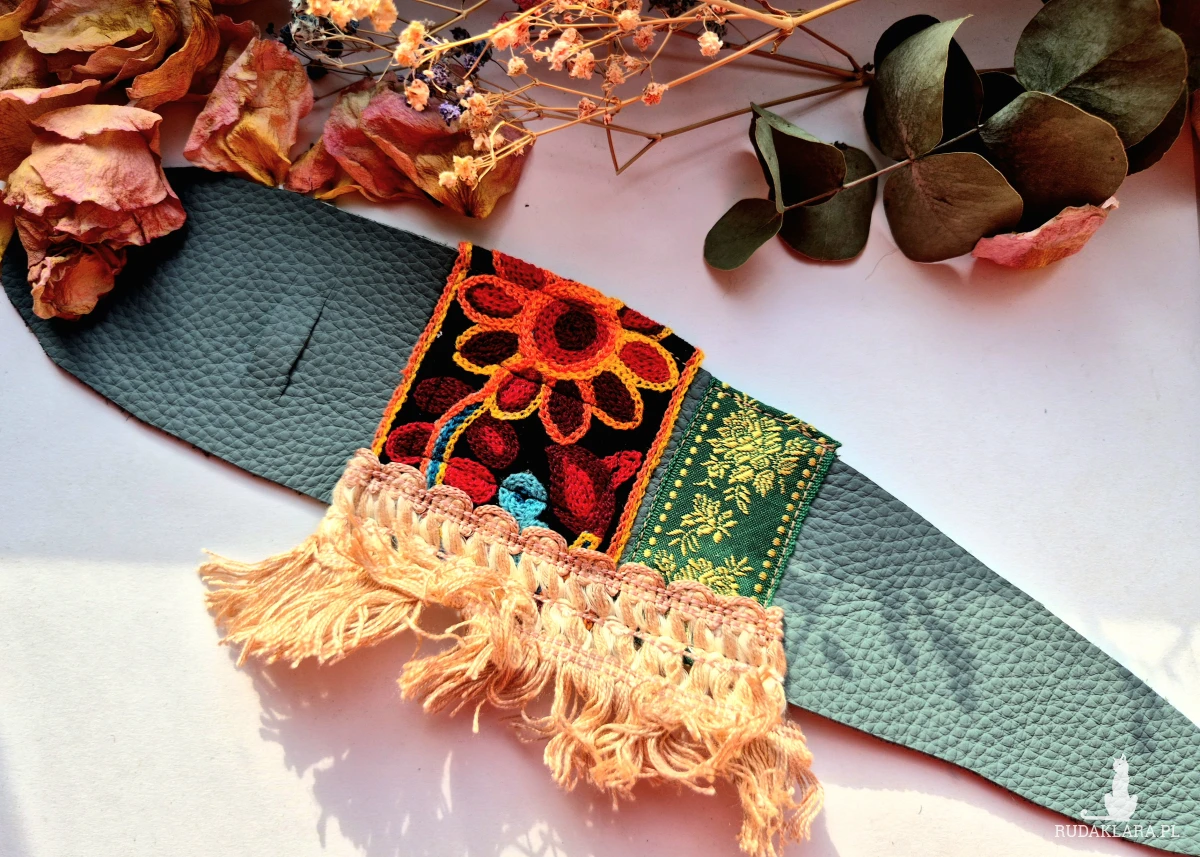Szeroka bransoletka Fridalasze  uniwersalna ze skóry z ozdobną taśmą Świetnie wygląda zakładana kopertowo polecam Box X1
