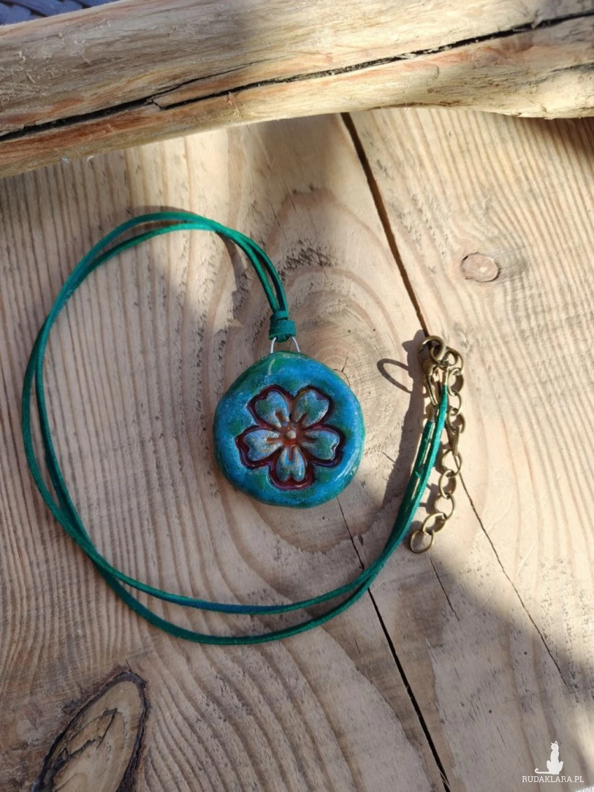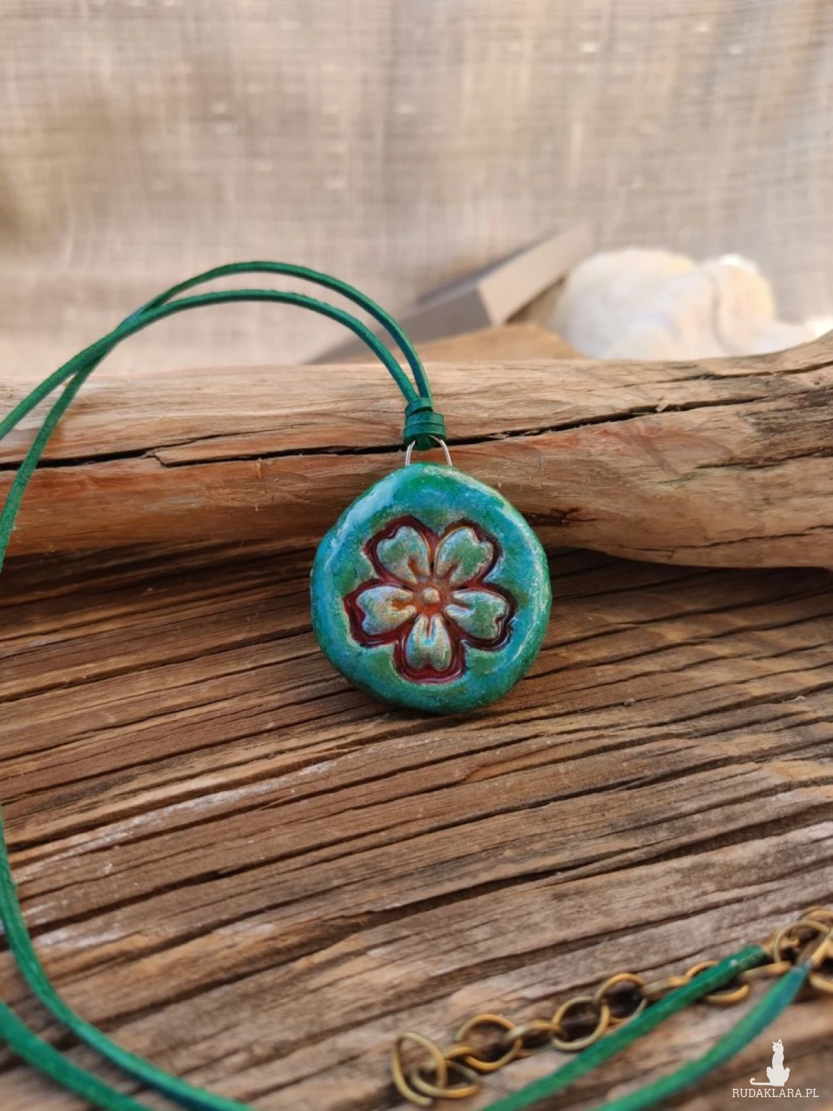 - zawieszona na regulowanym naturalnym rzemyku