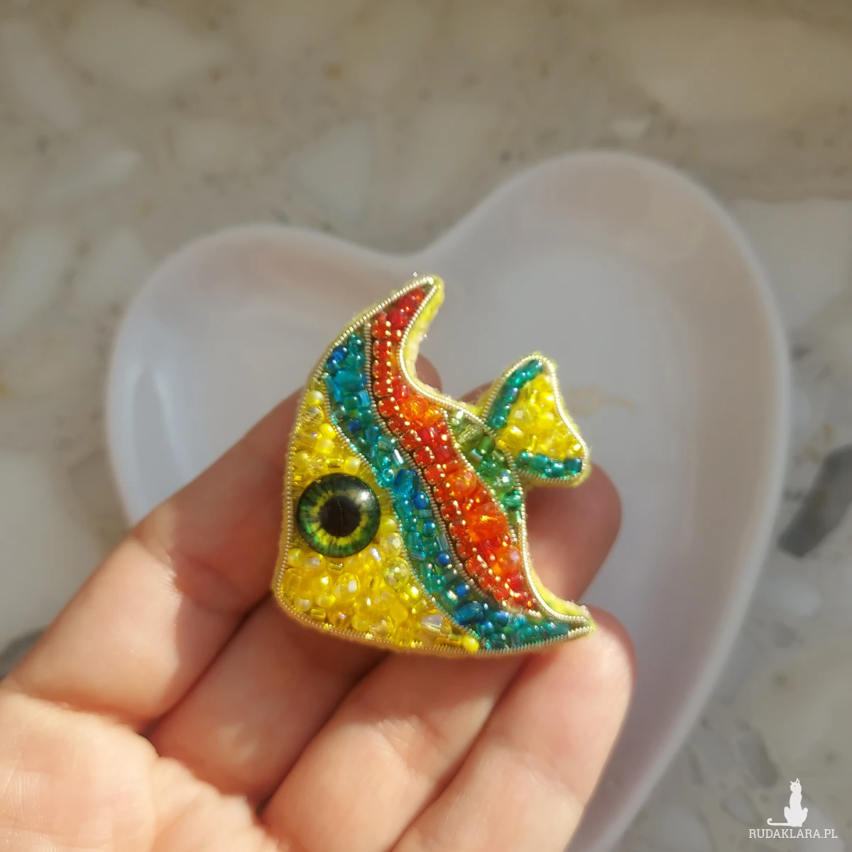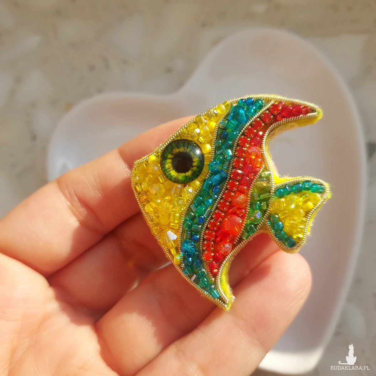 Mam dla Ciebie nowość kolejną kolorową, wyjątkową, wiosenno-letnią broszkę RYBKĘ. Powstała ręcznie z niezwykłą starannością oraz precyzją haftem koralikowym.
