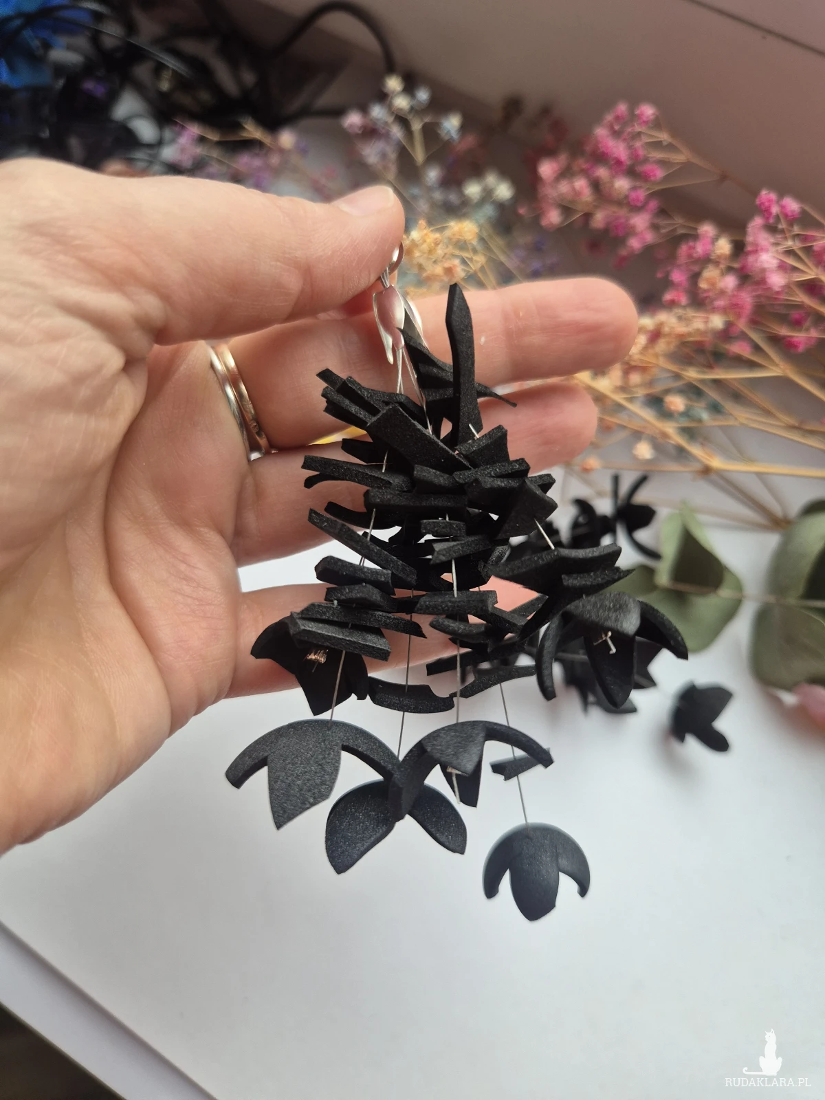 Czarne klipsy leciutkie i długie rękodzieła
