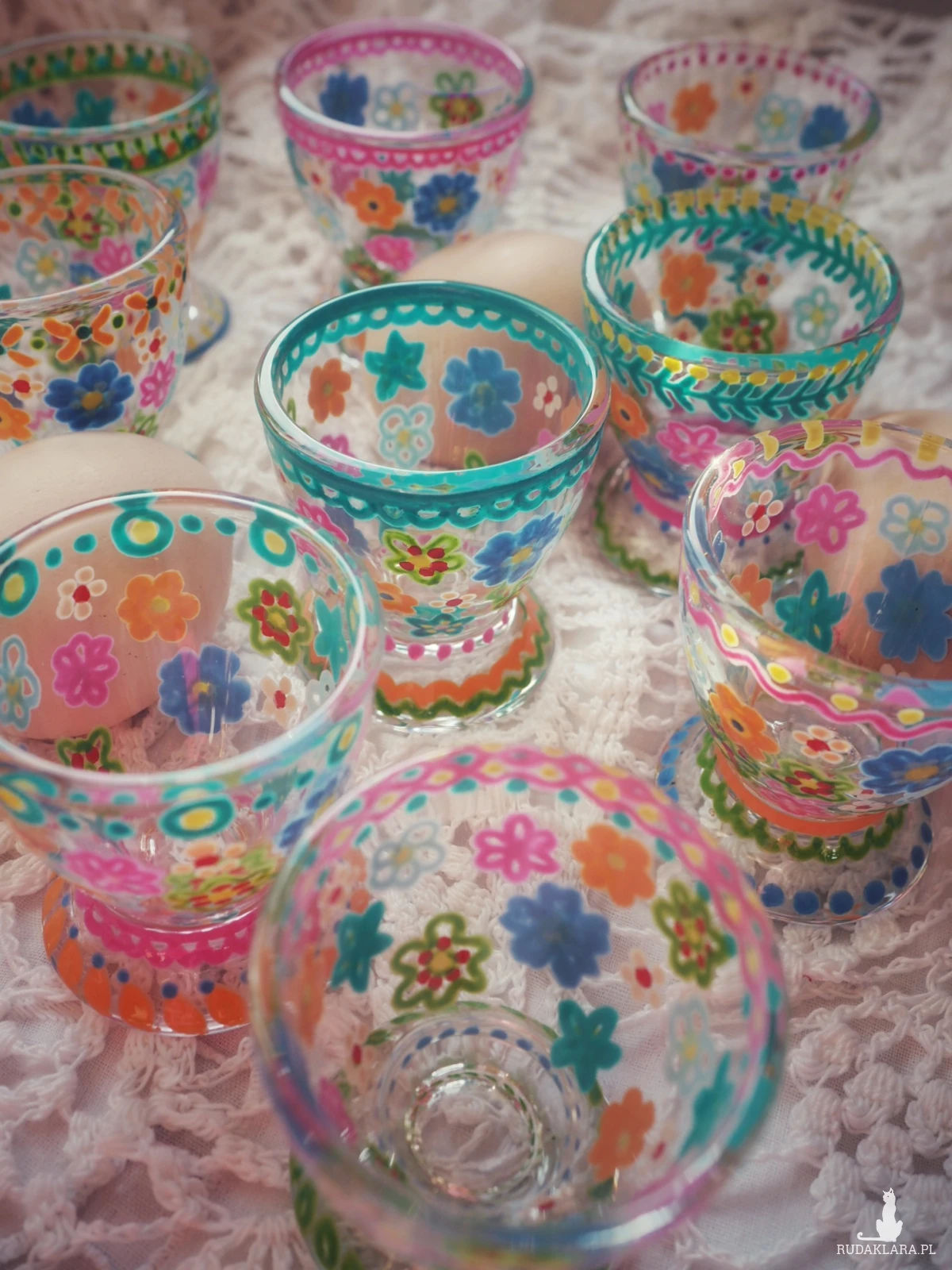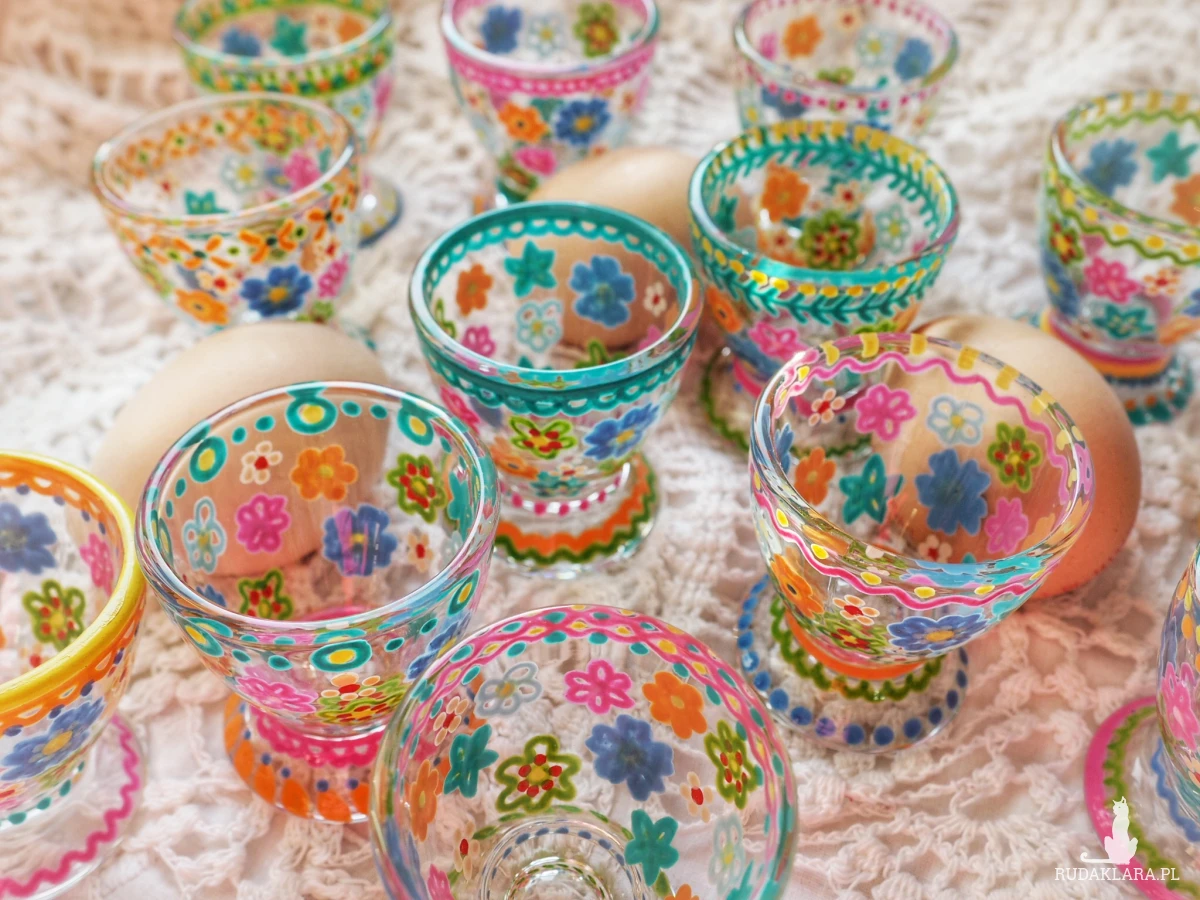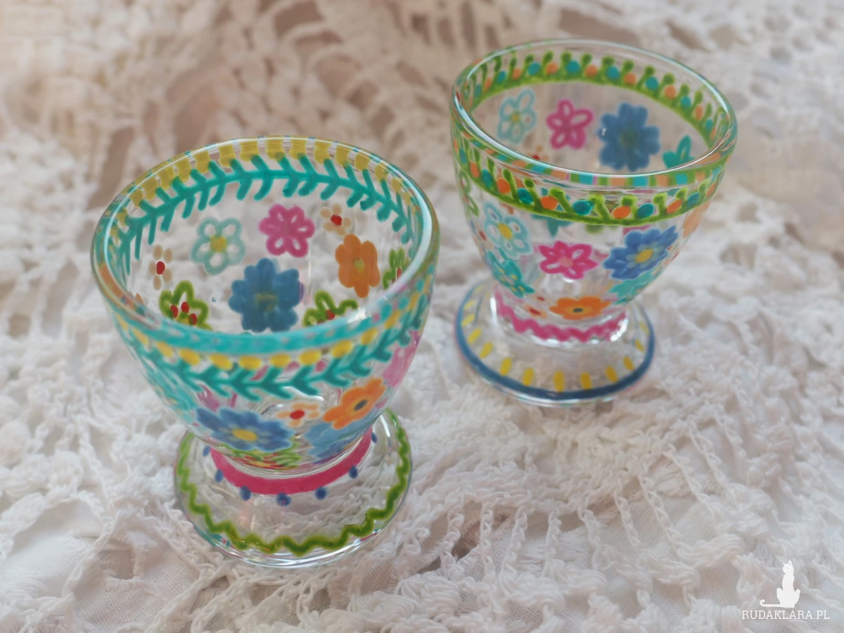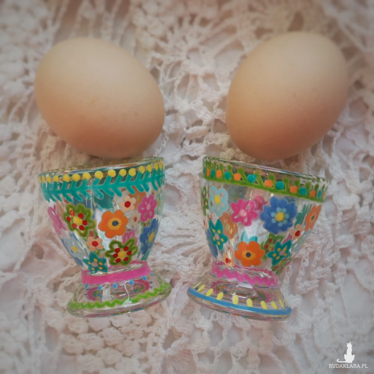 Ręcznie malowane kieliszki do jajek to wyjątkowy dodatek, który wprowadzi kolor do każdego śniadania. Żywe barwy sprawdzą się doskonale na co dzień i od święta, a kwiatowy wzór to uniwersalny rozweselacz stołu. Każdy kieliszek jest inny, jedyny w swoim rodzaju.