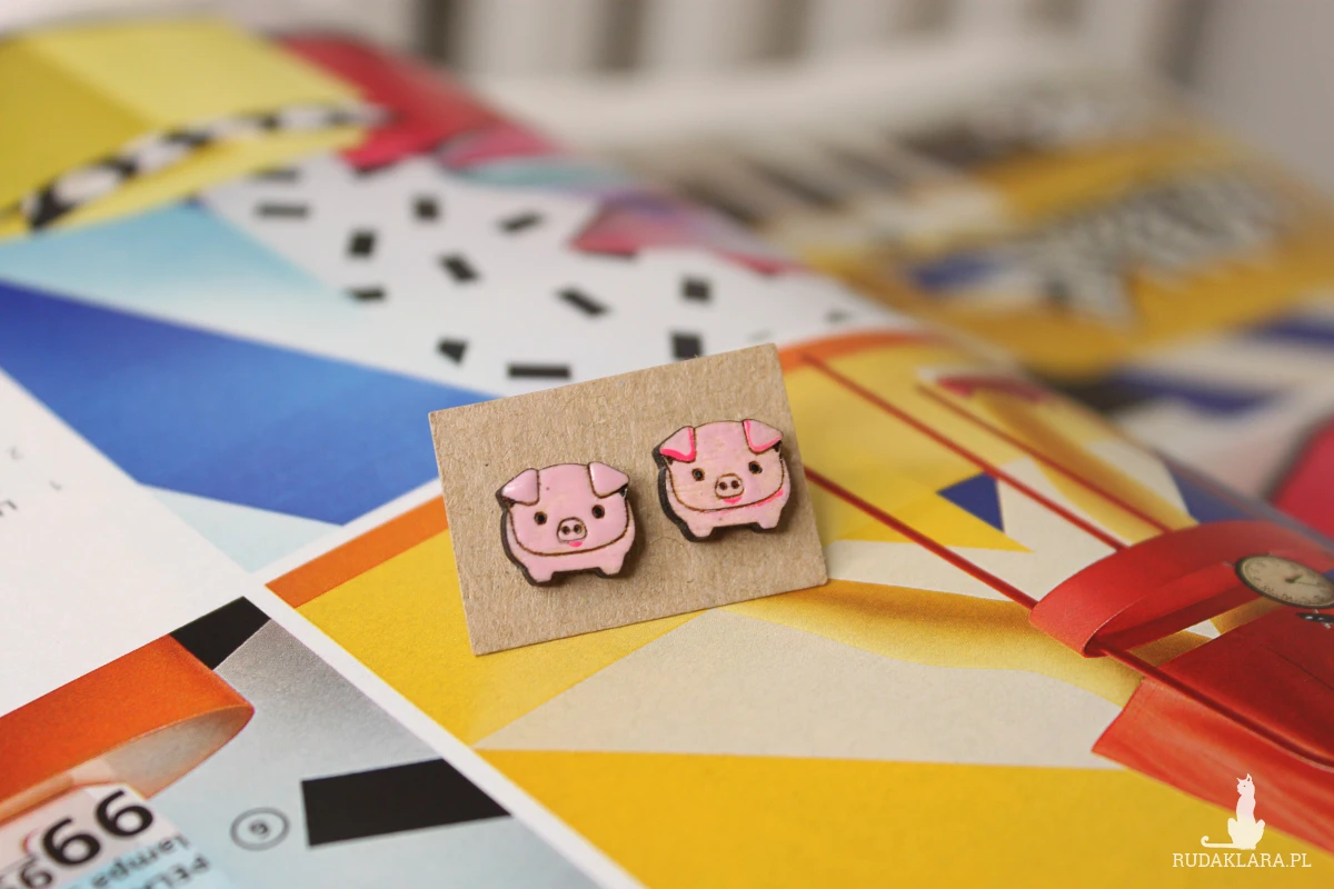 Drewniane kolczyki sztyfty Świnka