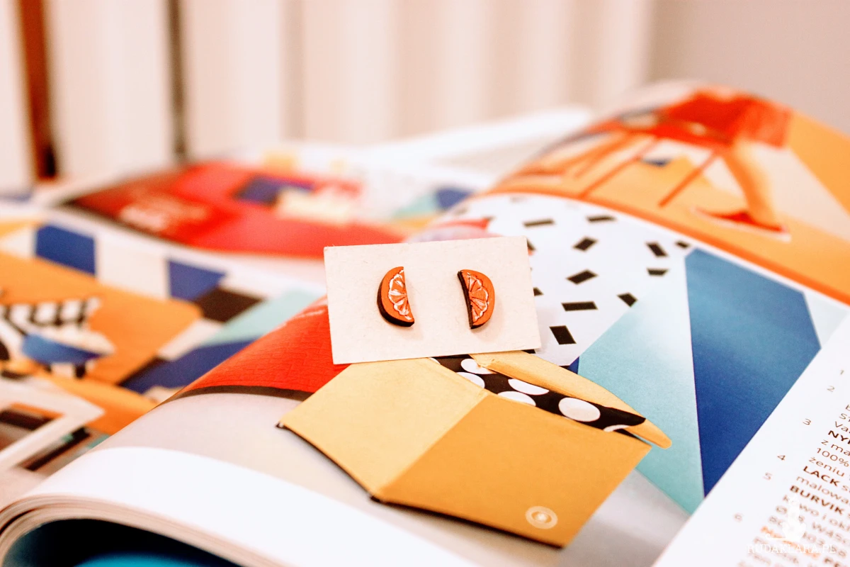 Drewniane kolczyki sztyfty Mandarynka Klementynka