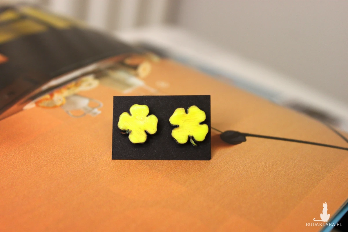 Drewniane kolczyki sztyfty #koniczyna.