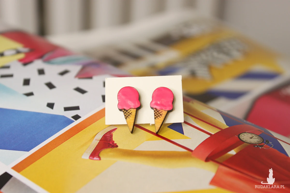 Drewniane kolczyki sztyfty Lody