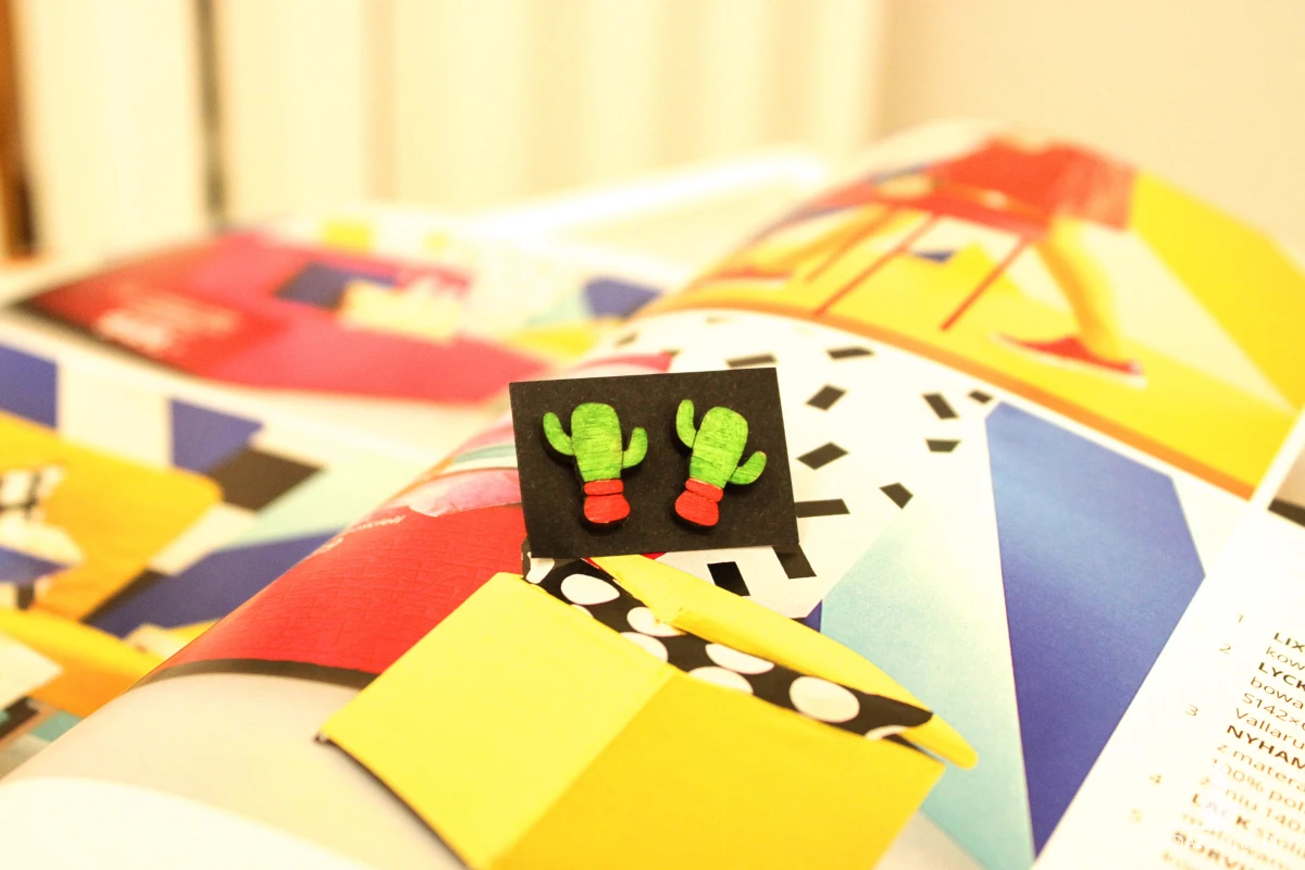 Drewniane kolczyki sztyfty #koniczyna.