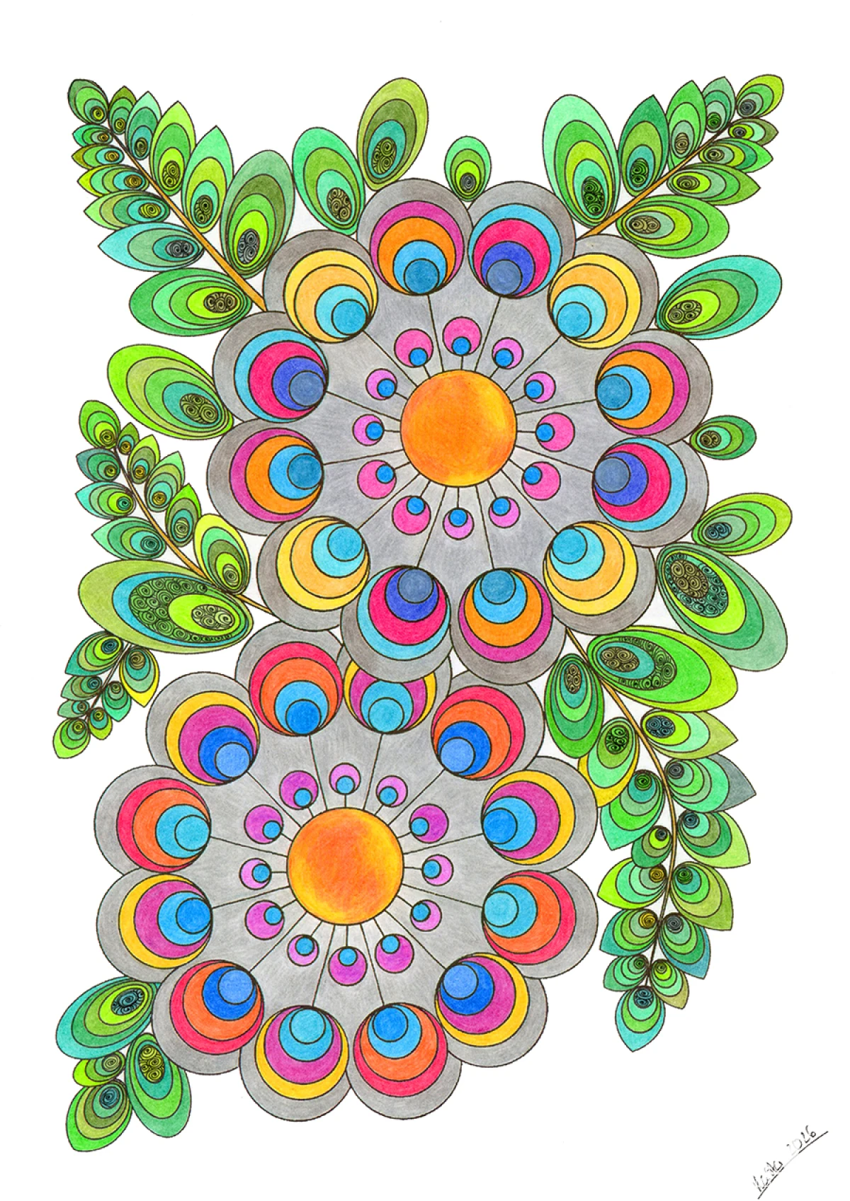 Styl: Modern Folk Art, Geometric Floral, Vibrant Illustration, Modern Folk Art.
