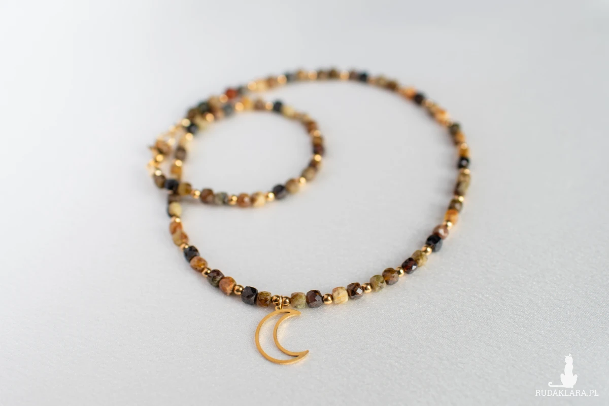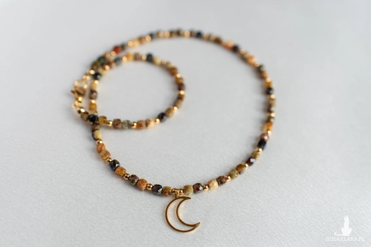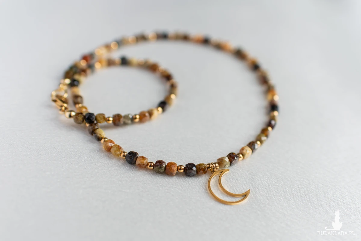 Naszyjnik z zielonego granatu z zawieszką w kształcie księżyca = naturalna świeżość kamienia z głęboką symboliką lunarną.