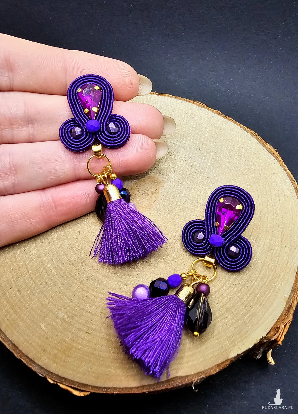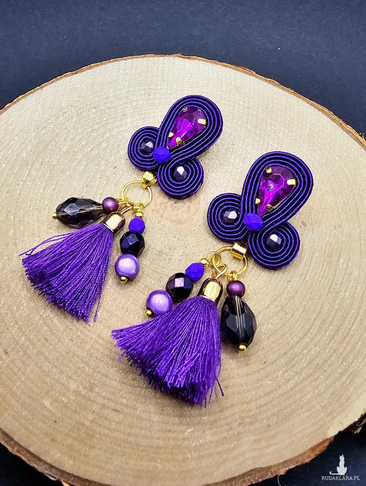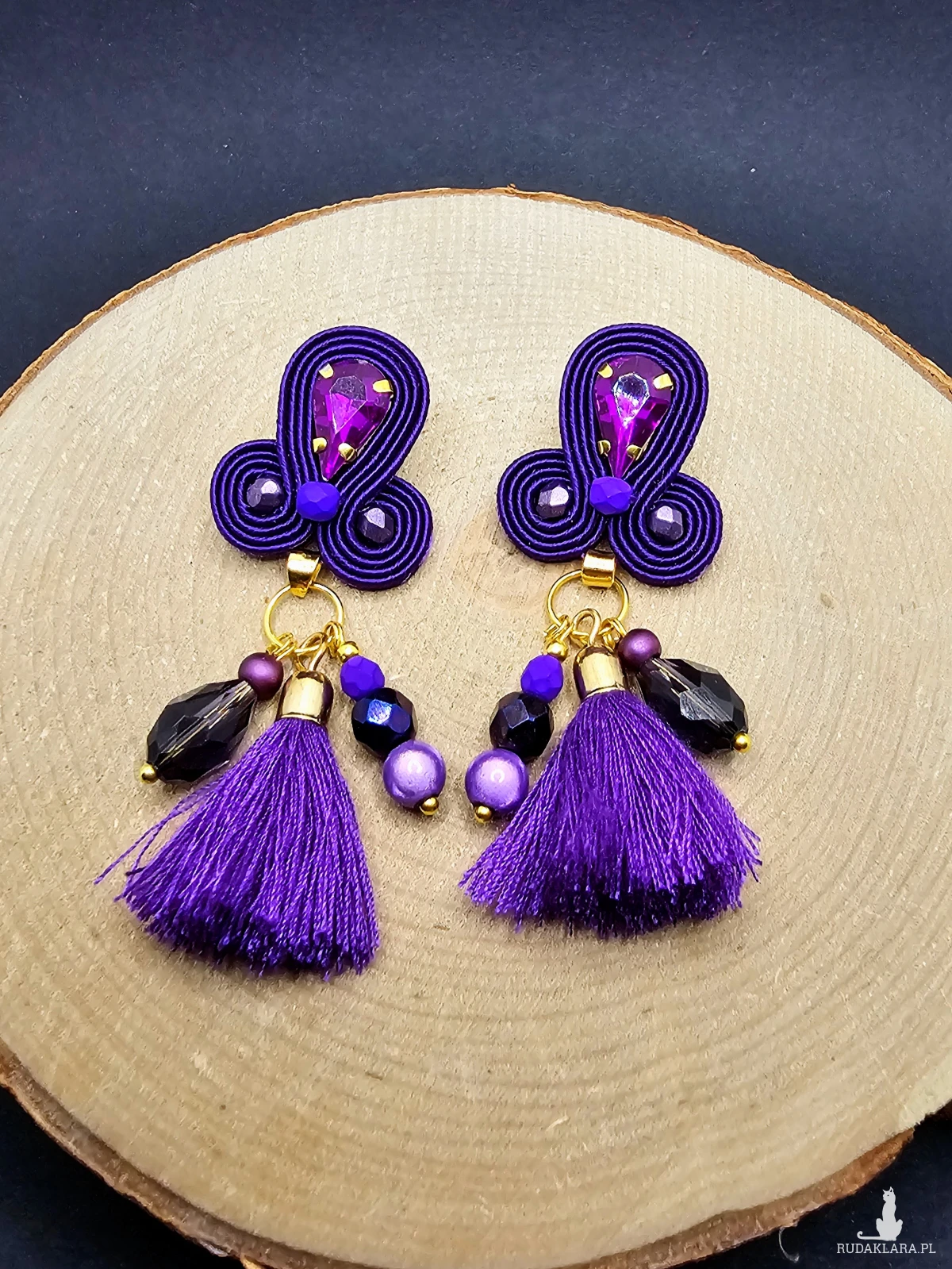Fioletowe kolczyki sutasz z chwostami