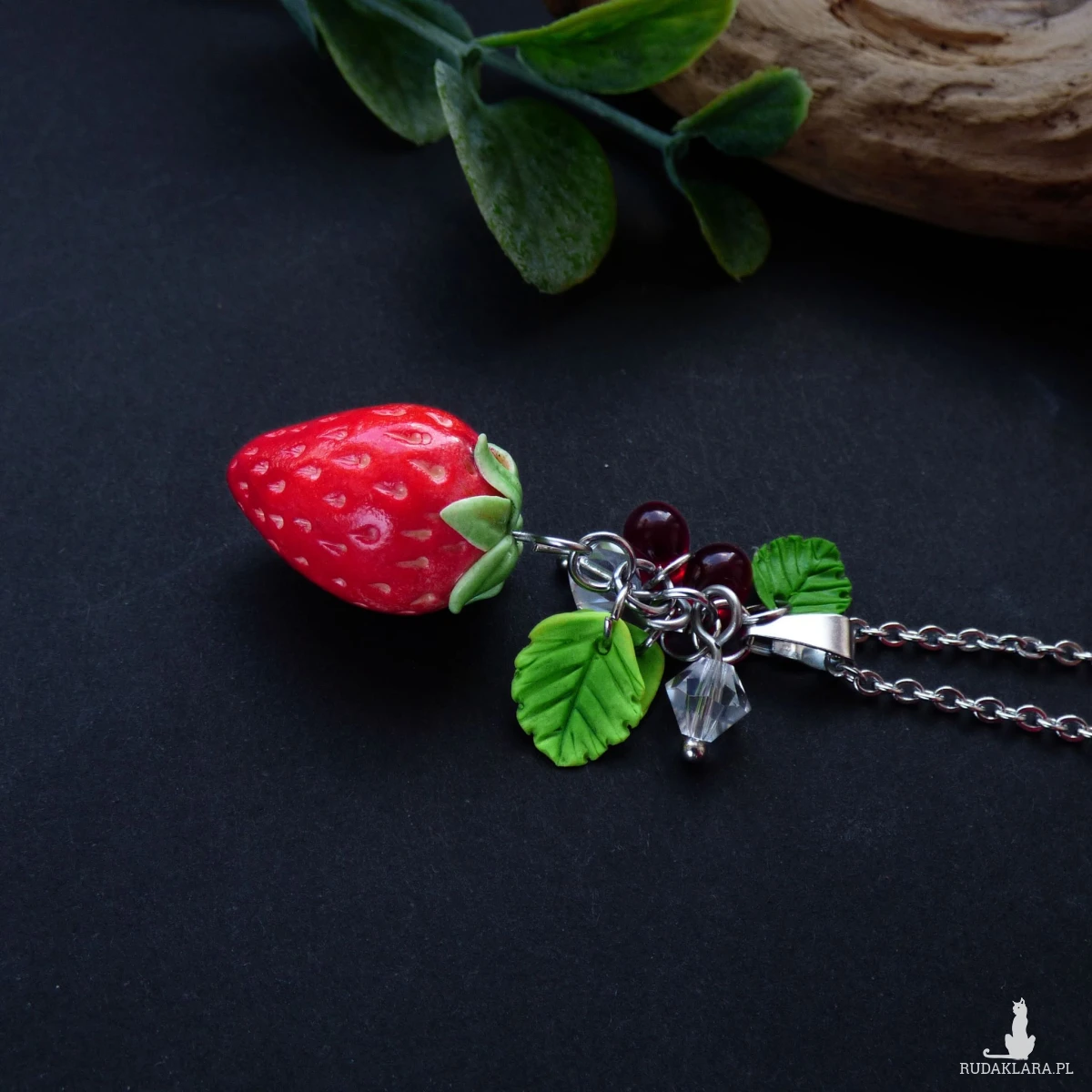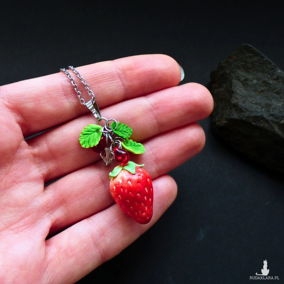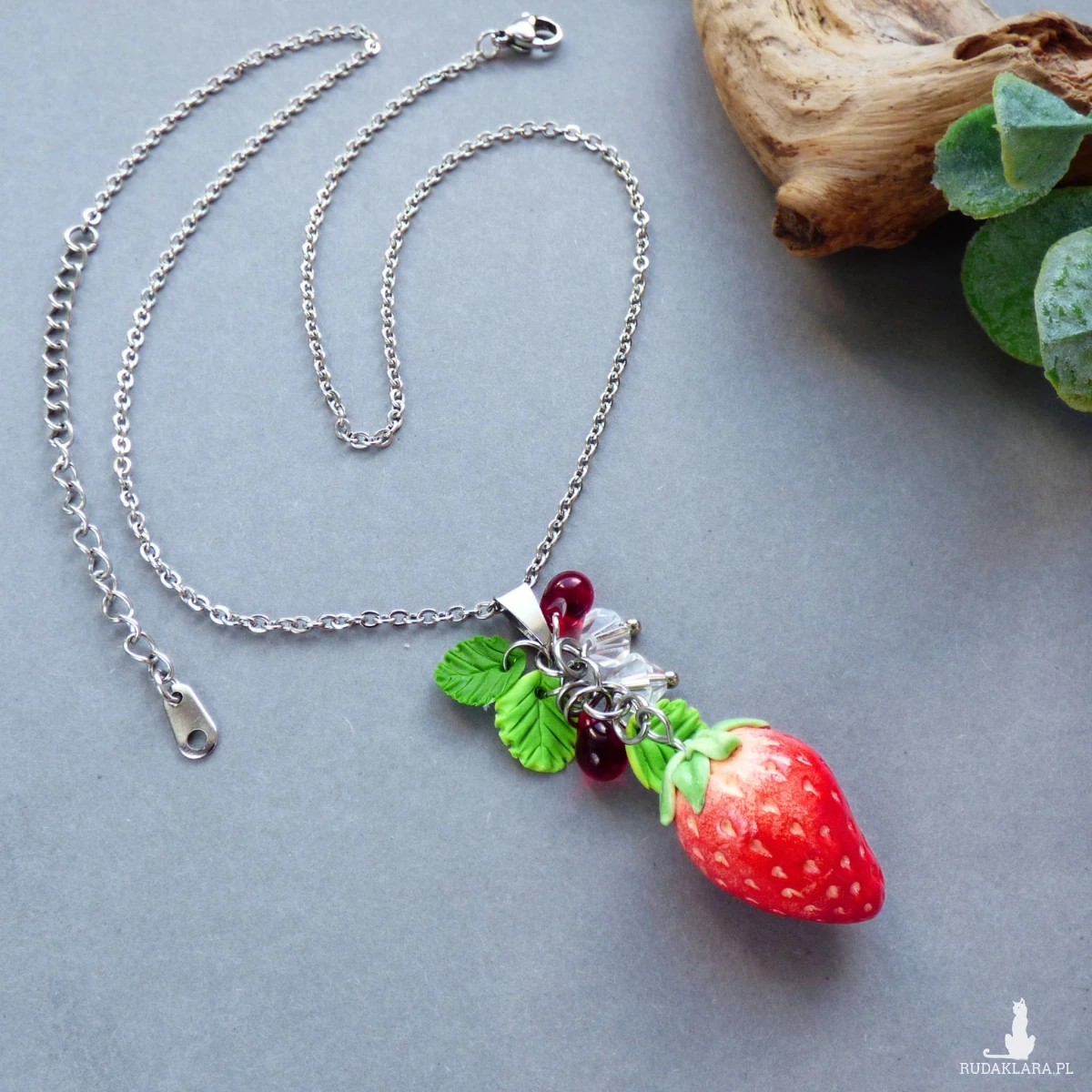 Truskawkowy naszyjnik to biżuteria dla osób, które kochają oryginalne dodatki, motywy inspirowane naturą i przedmioty tworzone z sercem. Świetnie sprawdzi się noszony solo jako uroczy, wyrazisty akcent, ale może też tworzyć piękny komplet z kolczykami w tym samym stylu.