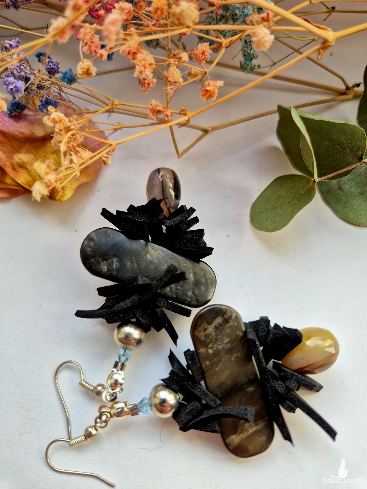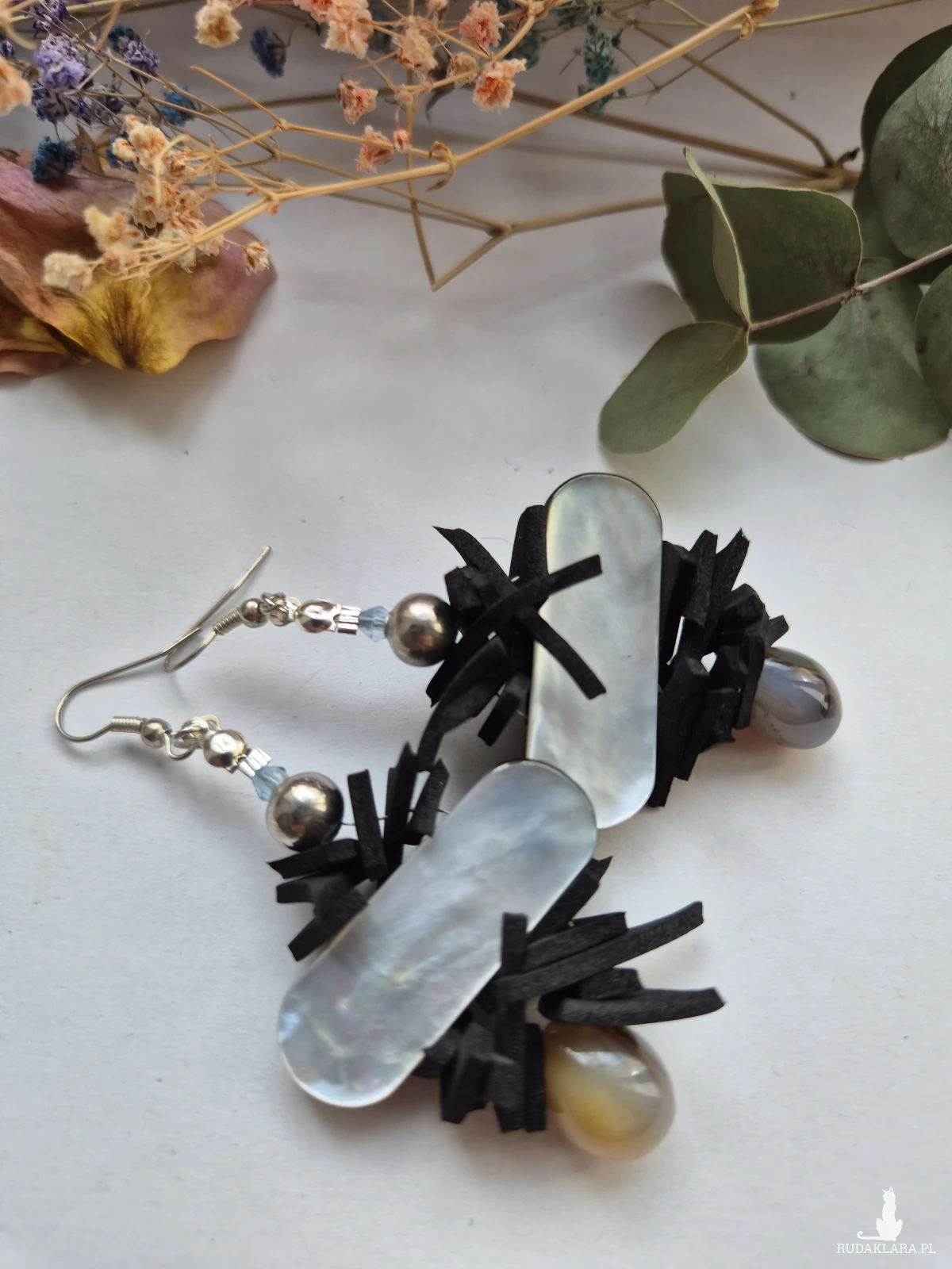 Kolczyki w odcieniach szarości masa Perłowa i kamienie oraz Cuda Wianki polecam Box X1