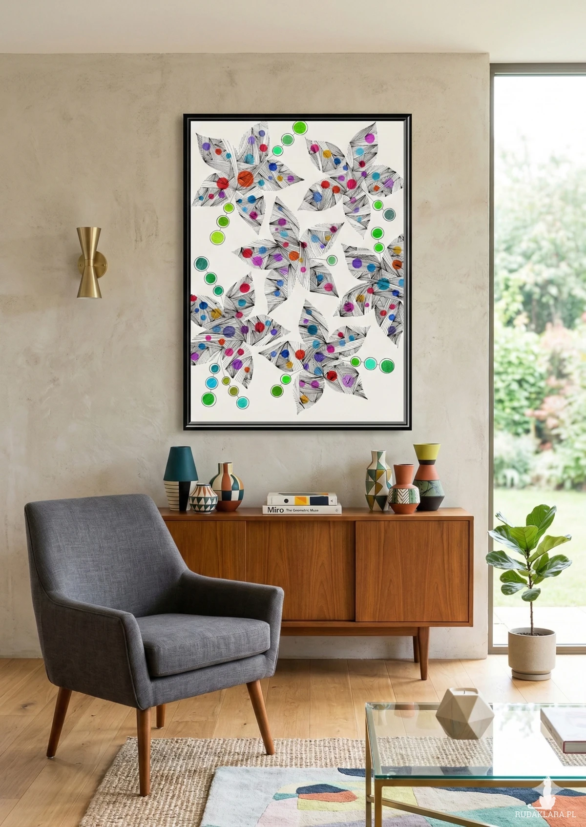 Styl:Abstrakcja geometryczna, Zentangle / Doodling, Minimalizm kolorystyczny, Graficzny.