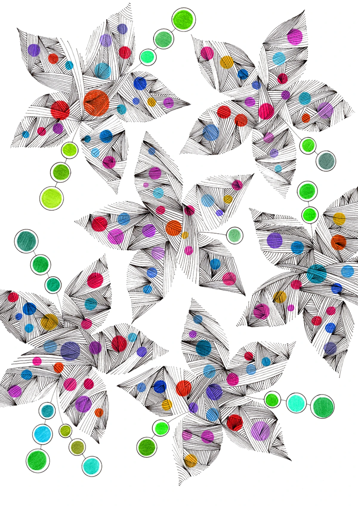 Styl:Abstrakcja geometryczna, Zentangle / Doodling, Minimalizm kolorystyczny, Graficzny.