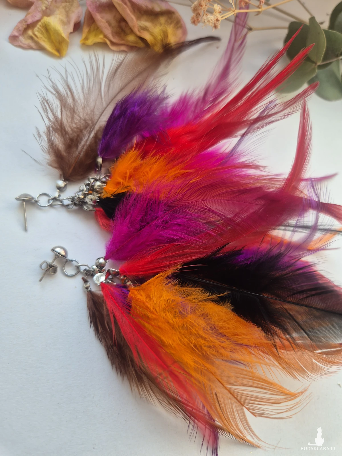 Kolczyki pióra leciutkie kolorowe energetyczne rękodzieło
