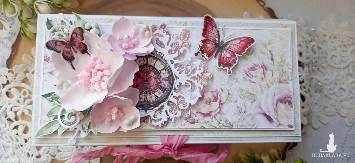 Czekoladownik czyli ozdobne pudełko na czekoladę o wymiarach 17,5x9x1,5 cm. Zmieści się do niego czekolada Wedla czy Milka. W środku karteczka podklejona taśmą dwustronną, na której można wypisać życzenia i przykleić na wewnętrznej stronie wieczka.