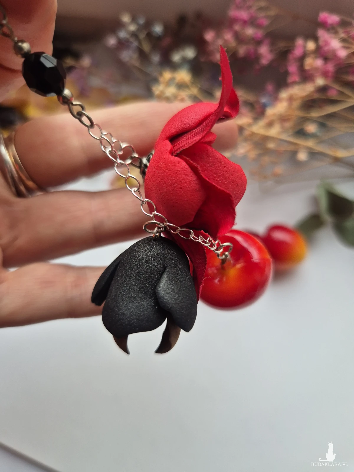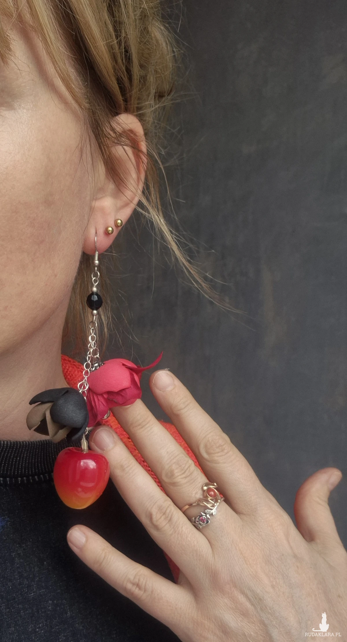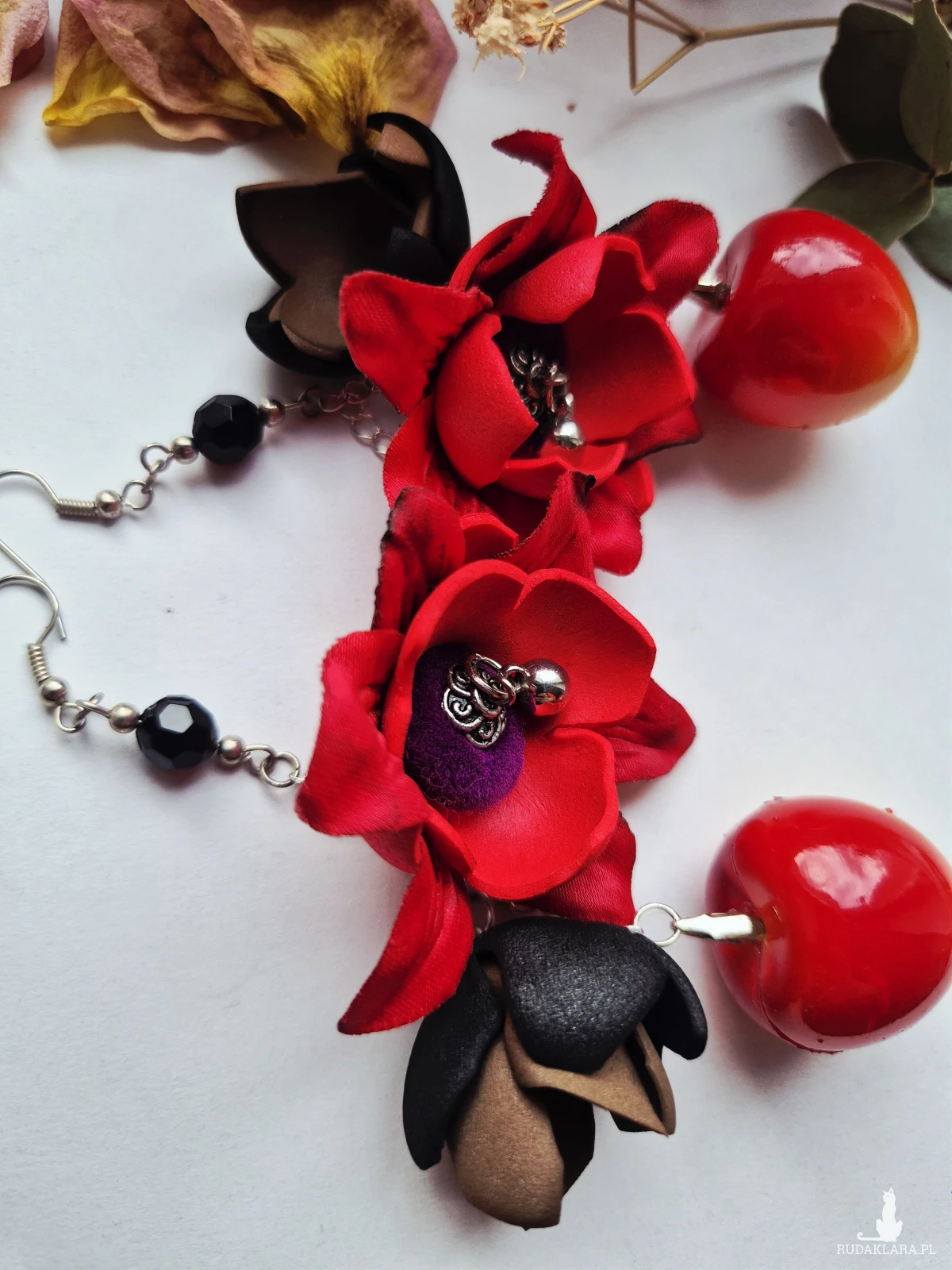 Kolczyki długie z czereśnią