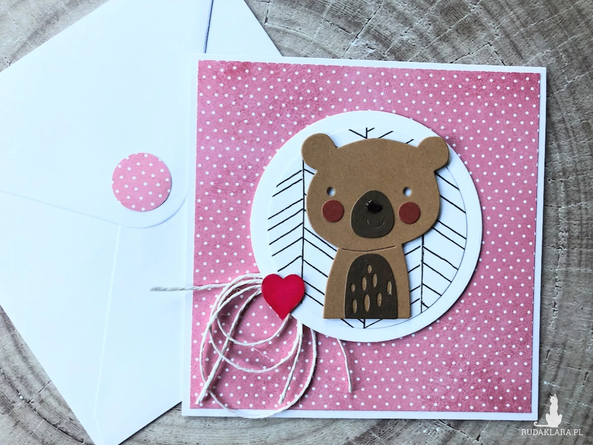 Urocza kartka z okazji narodzin bobasa/ chrztu lub urodzinek - wykonana na bazie kartonu białego z misiem.Wielkość kartki to 13,5x13,5.Wewnątrz miejsce na życzenia oraz kieszonka na małe co nieco (przykład). do karty dołączona biała koperta - solidna, o bardzo wysokiej gramaturze (120g), ozdobiona pasującym motywem. na zdjęciu pokazana koperta.