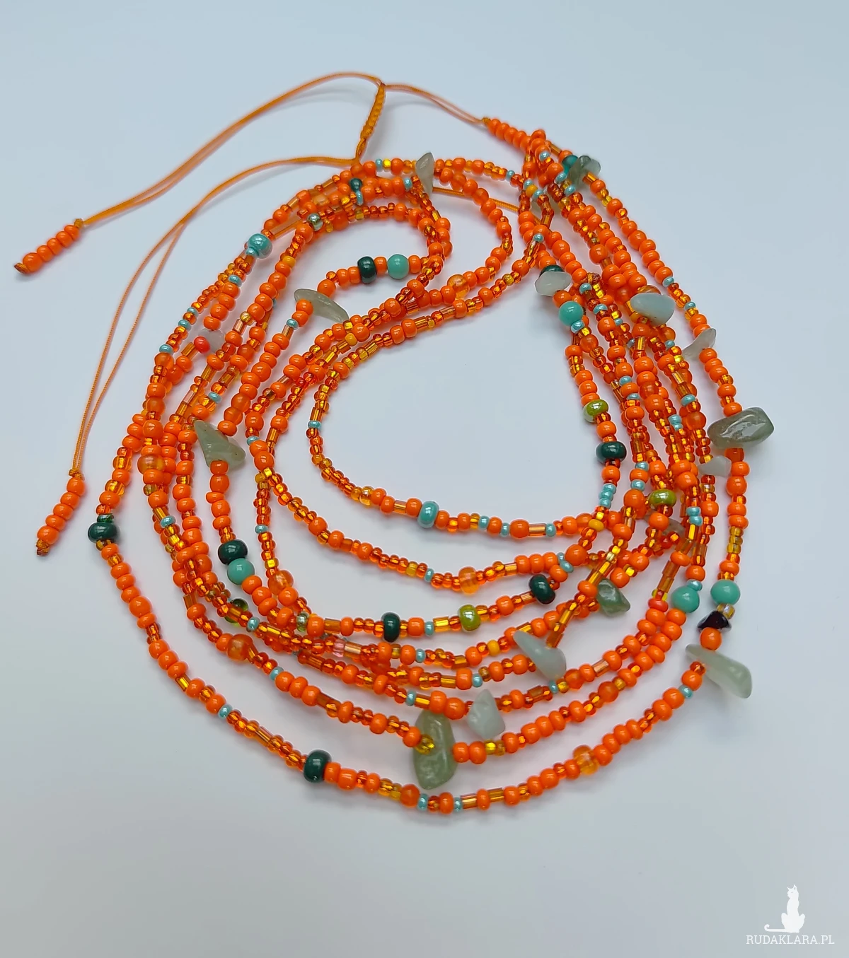 koralików, ozdobionych nieregularnymi kawałkami zielonego jadeitu. Ta