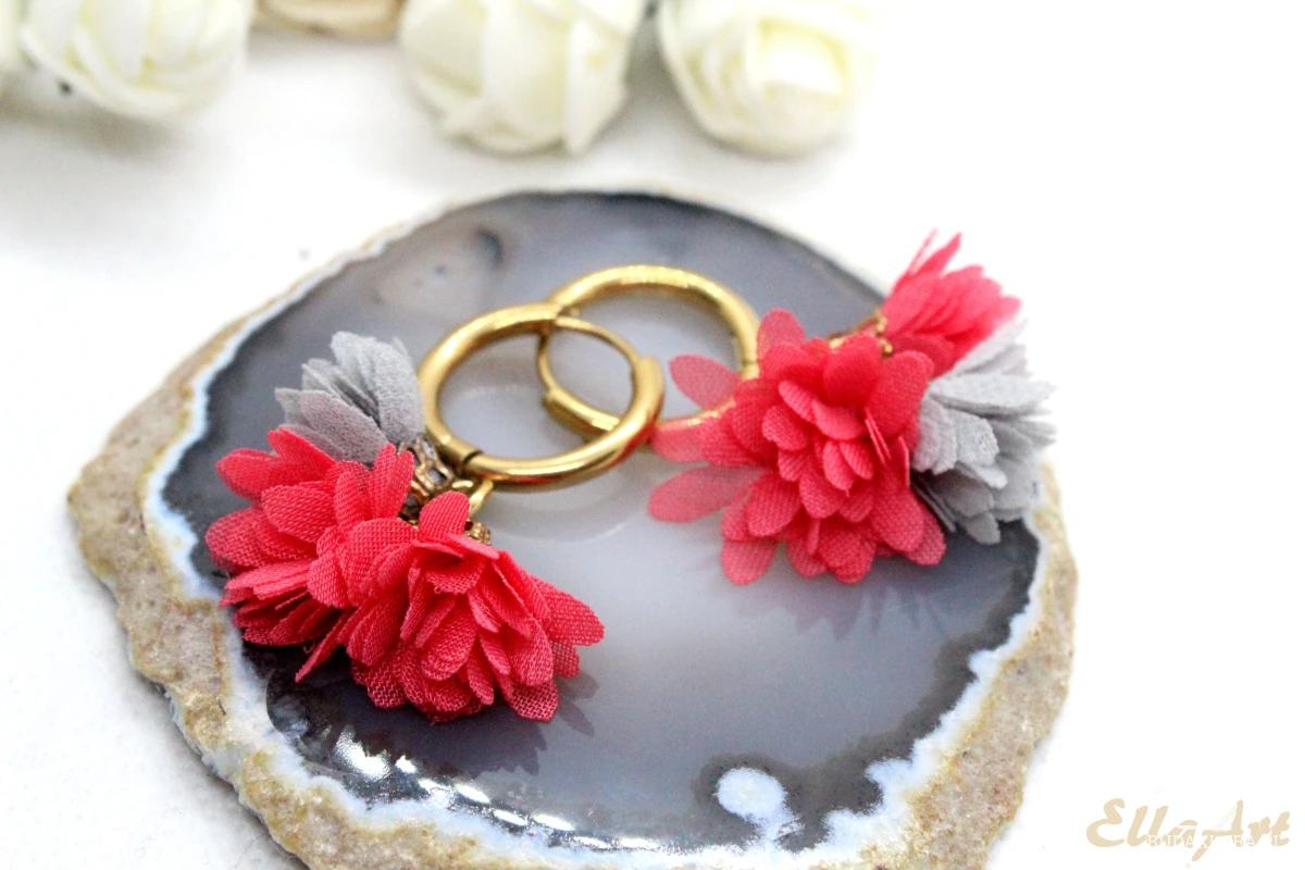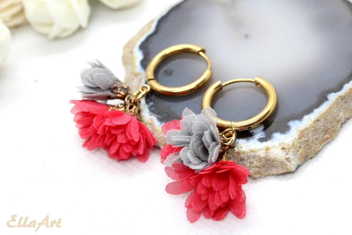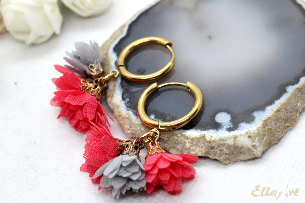 delikatne kolczyki kółeczka z kwiatkami
